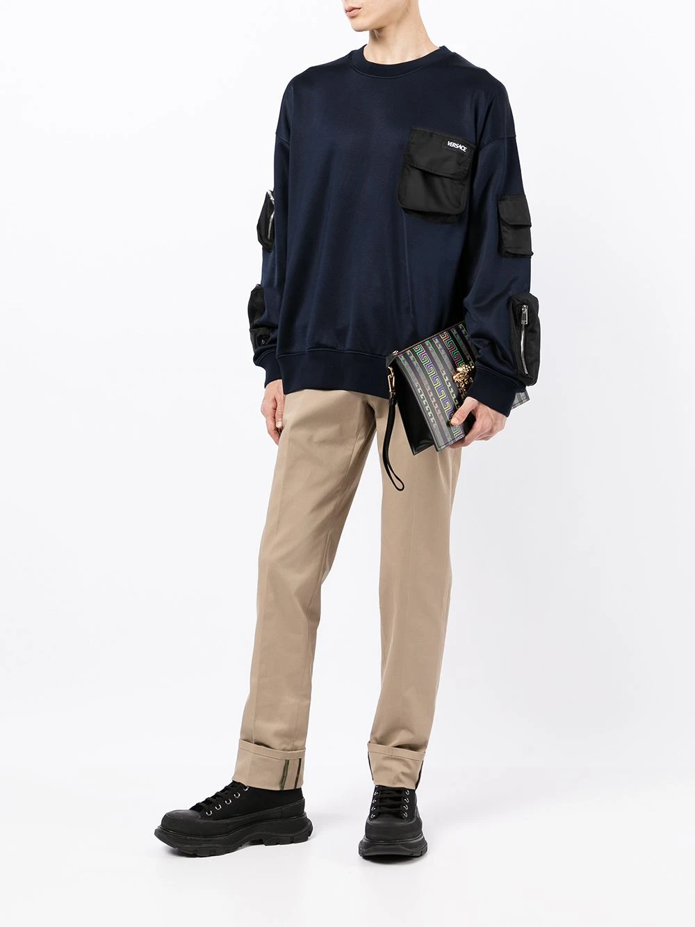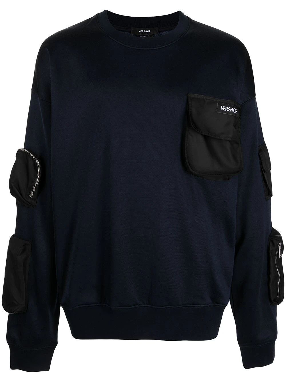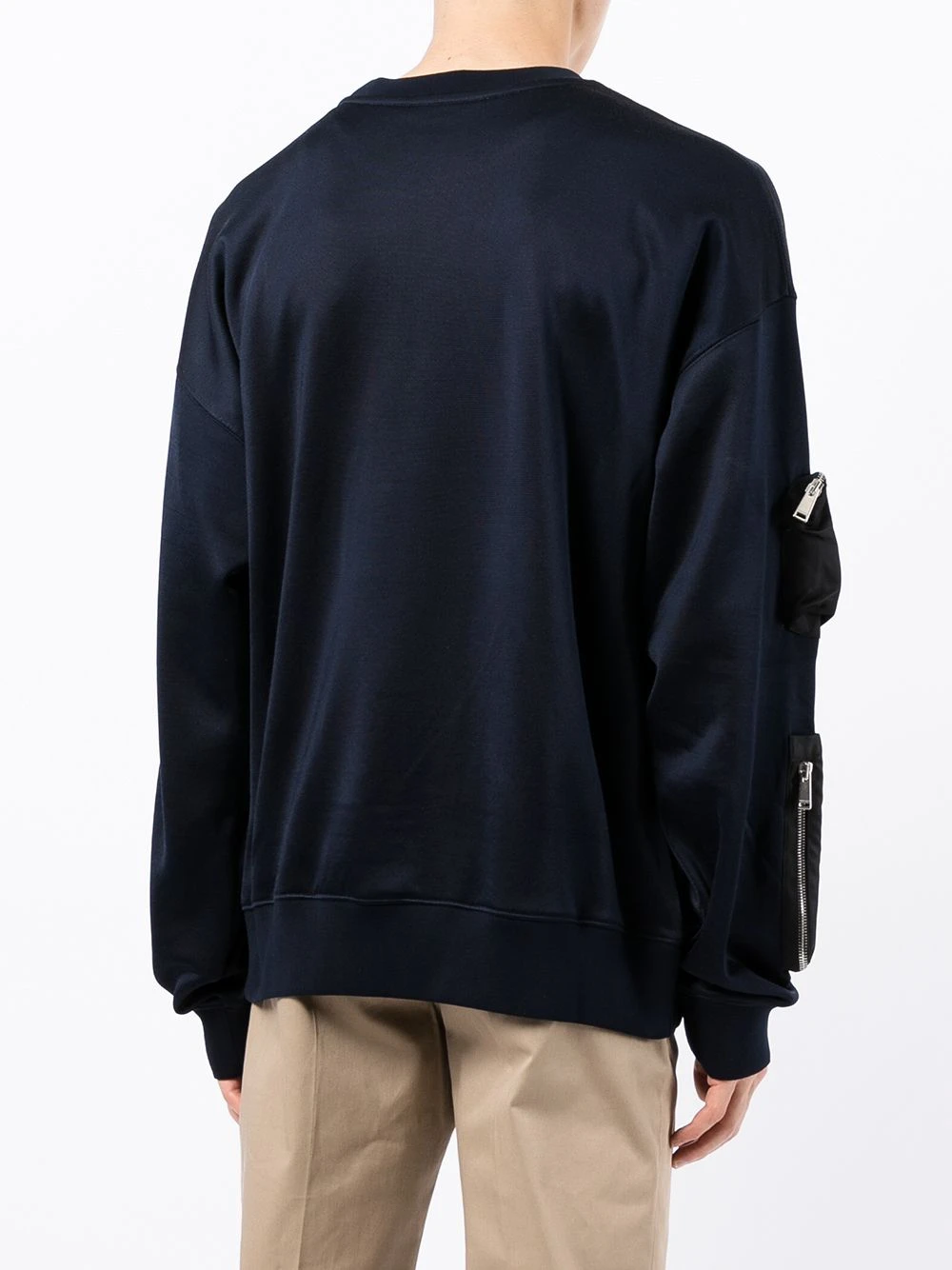 Encolure ras du cou, poche poitrine plaquée, patch poitrine à logo, manches longues, poignets nervurés, ourlet nervuré. Couleur : bleu.