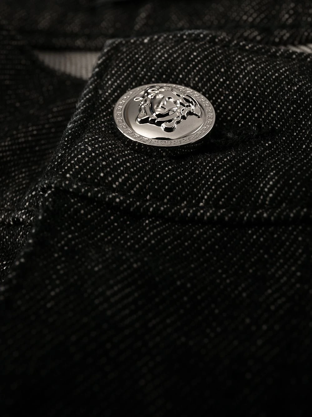 Fermeture à zip et boutons sur le devant, passants de ceinture, poches latérales arrondies, patch logo sur l’arrière, poches arrière plaquées. Couleur : noir. Matière : coton.