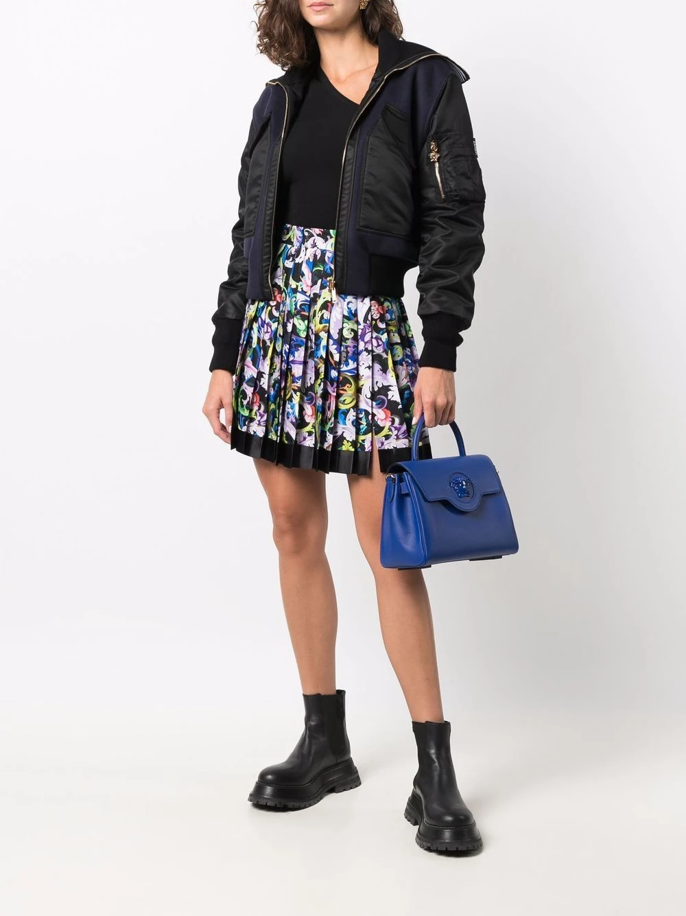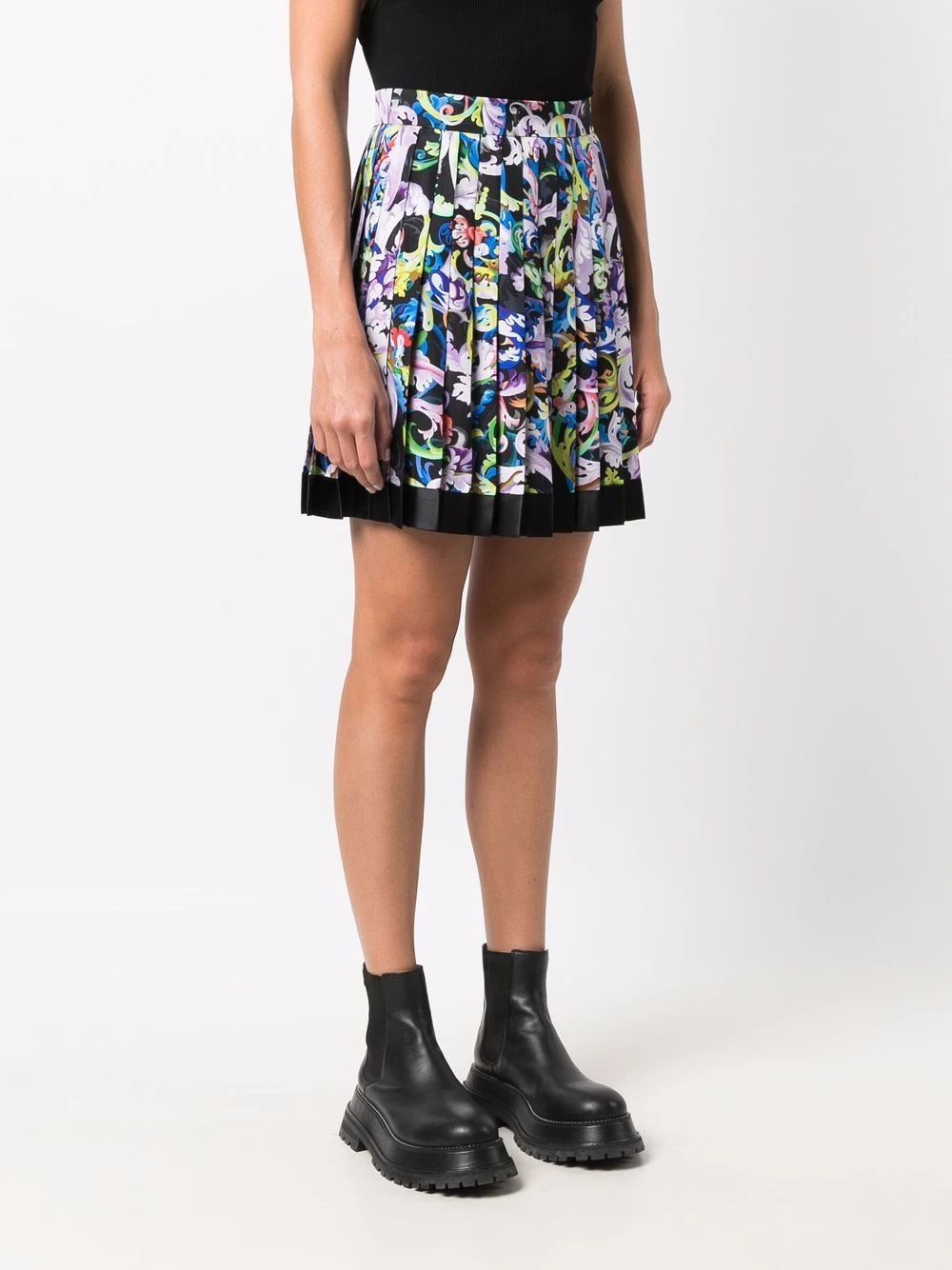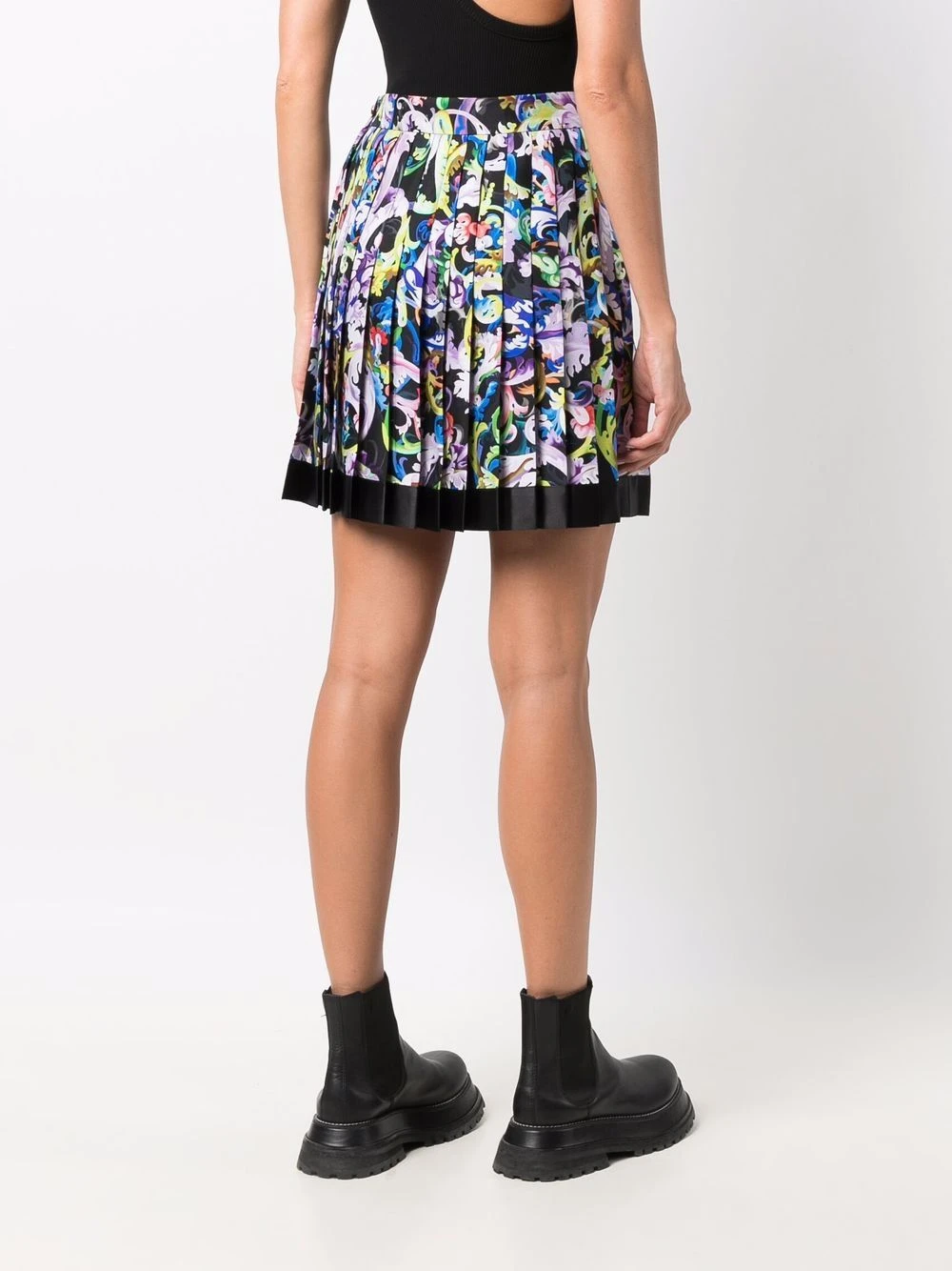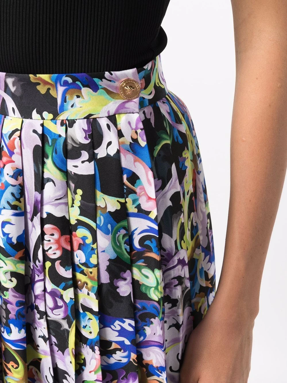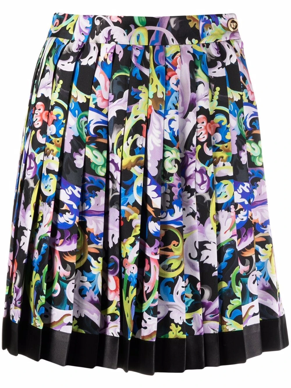 Motif baroque, taille haute, design plissé, bouton et zip sur le côté, finitions en métal doré, bordure contrastante. Couleur : multicolore. Matière : soie.