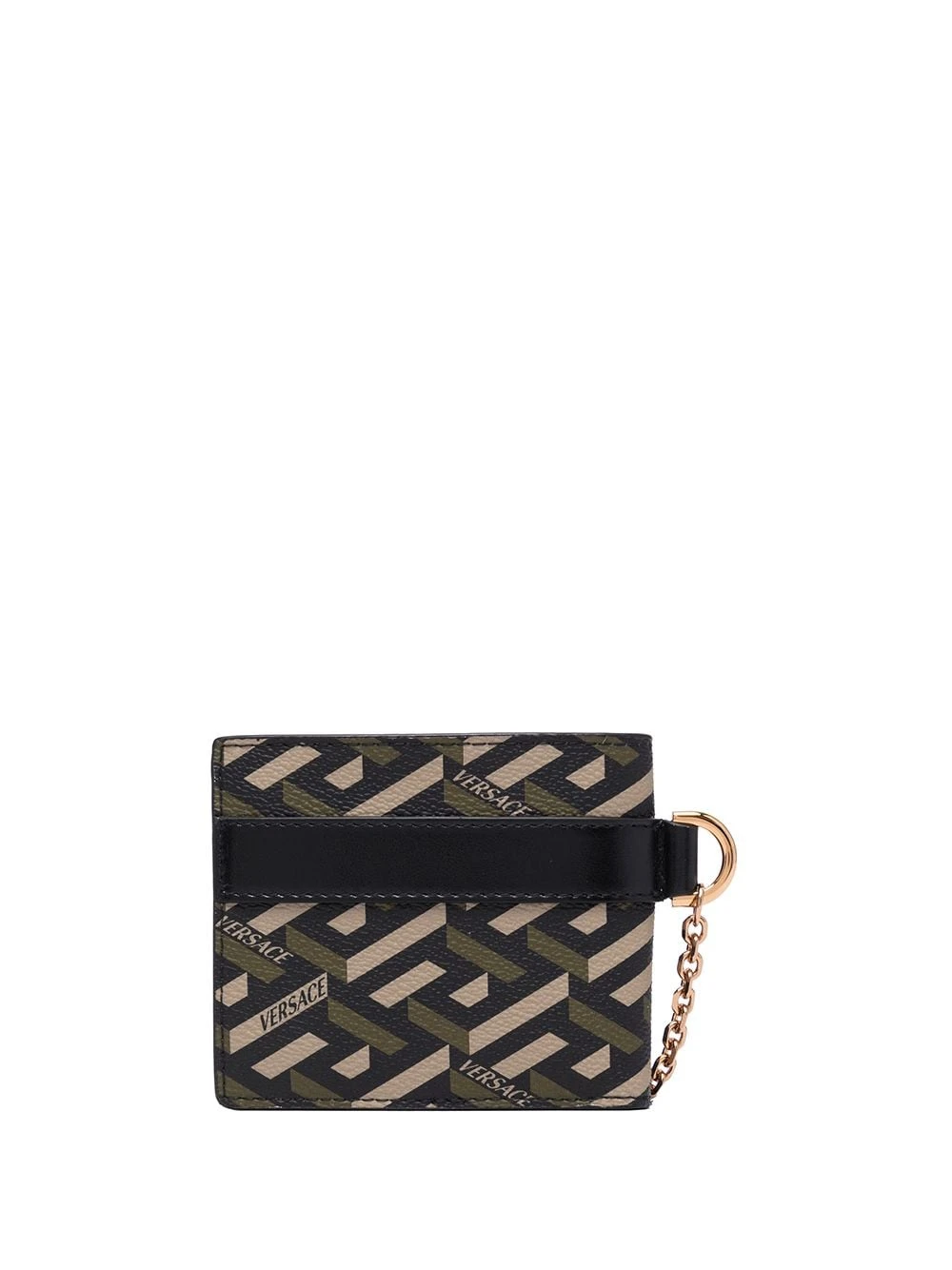 Imprimé monogrammé, plaque logo dorée, rabat sur le dessus, compartiments intérieurs pour carte, poche ticket. Couleur : vert. Matière : cuir.