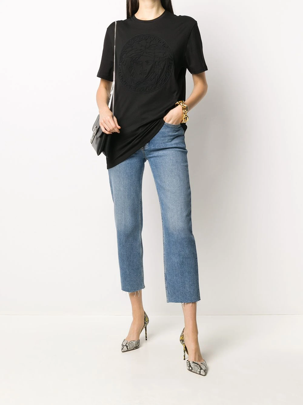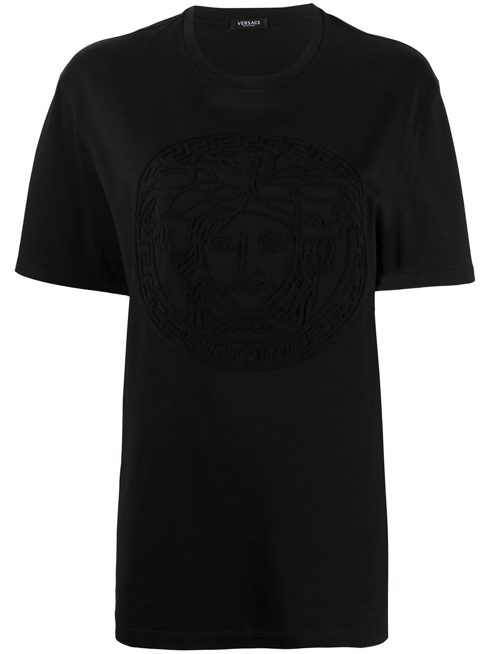Encolure ronde, manches courtes, motif Medusa, ourlet droit. Couleur : noir. Matière : COTON.