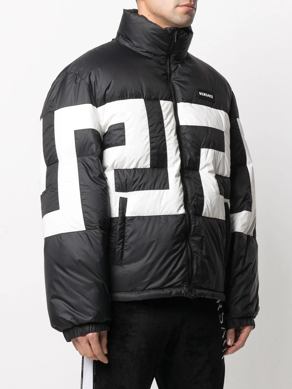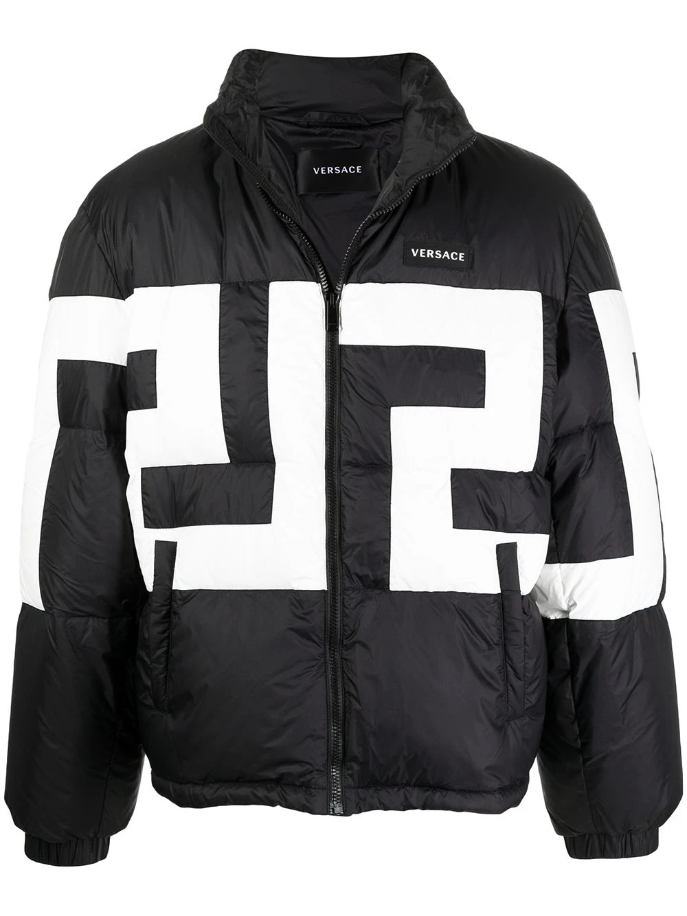 Col montant, fermeture zippée devant, patch logo sur le devant, deux poches latérales zippées, manches longues, poignets élastiqués, ourlet droit. Matière : duvet.