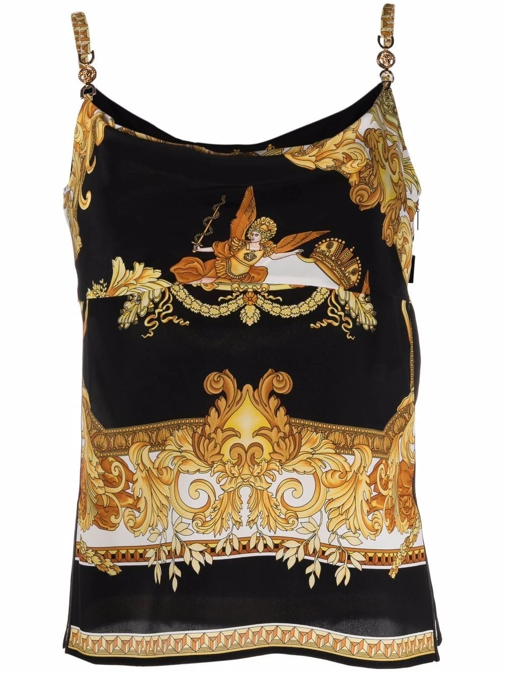 Imprimé Medusa Renaissance signature, détails drapés, fines bretelles, détail Medusa, ourlet droit. Matière : soie.