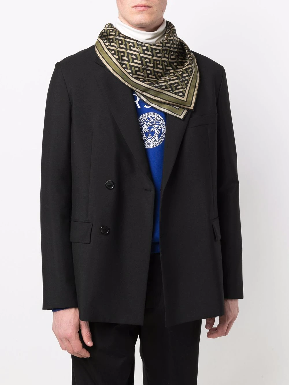 Motif géométrique, logo imprimé sur le devant, taille ajustable, bords finis.