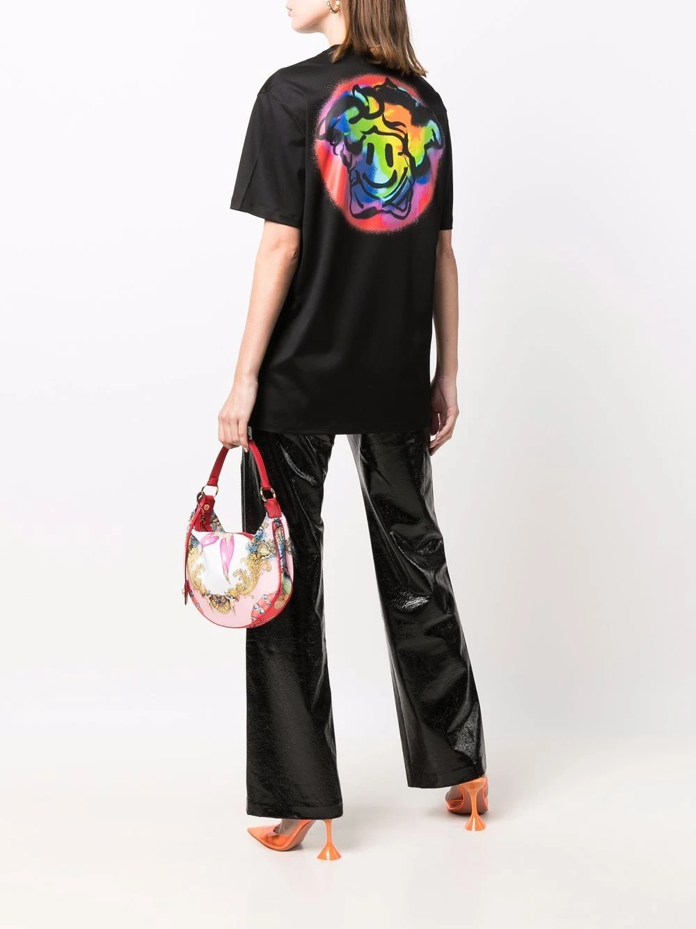 Encolure ronde, logo imprimé à la poitrine, tricot point jersey, ourlet droit, manches courtes. Couleur : noir. Matière : coton.