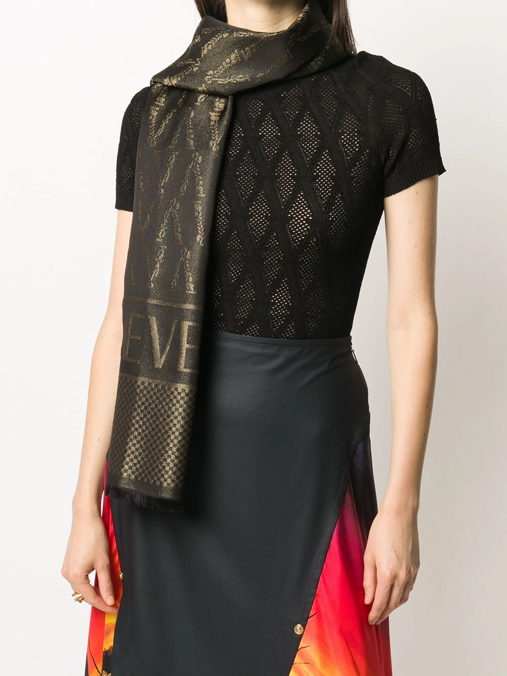 Bordure à franges, coupe mi-longue, logo imprimé sur le devant. Couleur : noir.