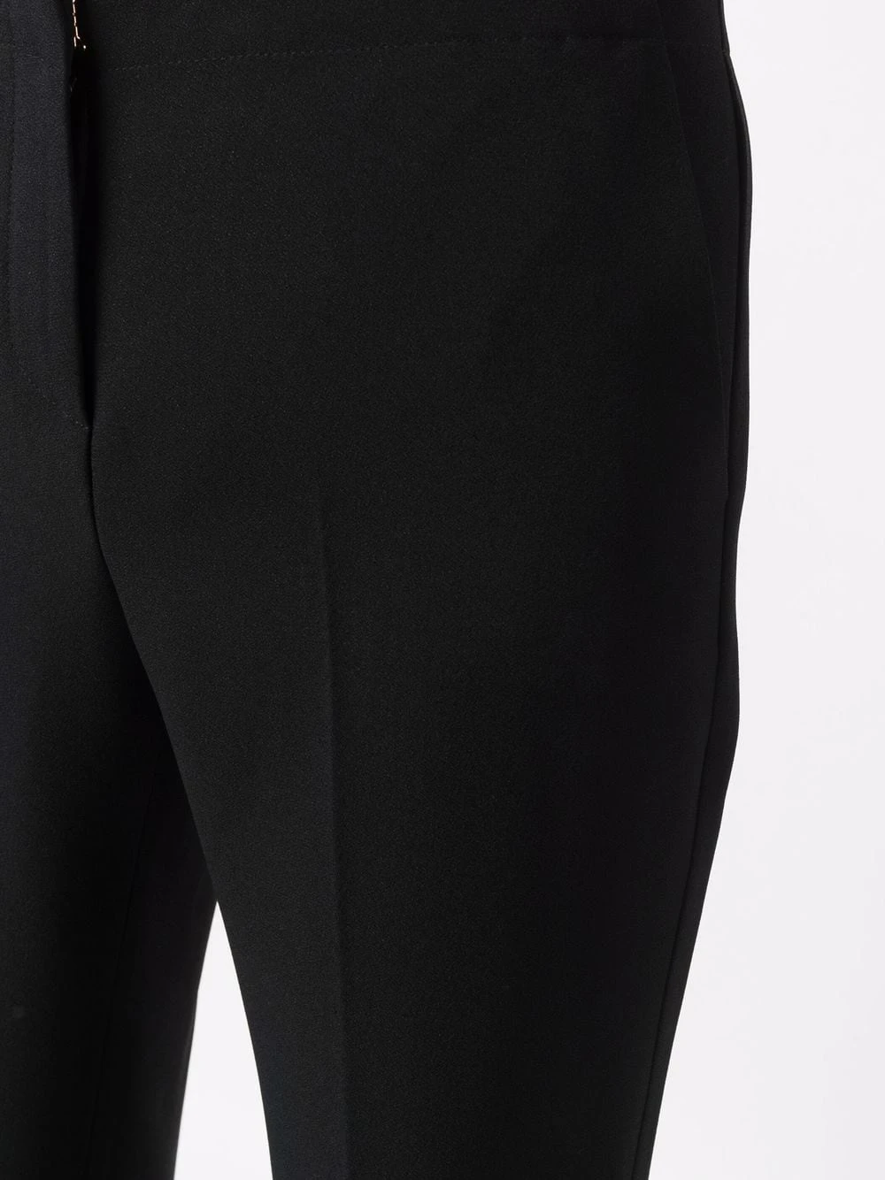 Plis marqués, fermeture à zip et agrafes, taille mi-haute, design ton sur ton, longueur crop. Couleur : noir.