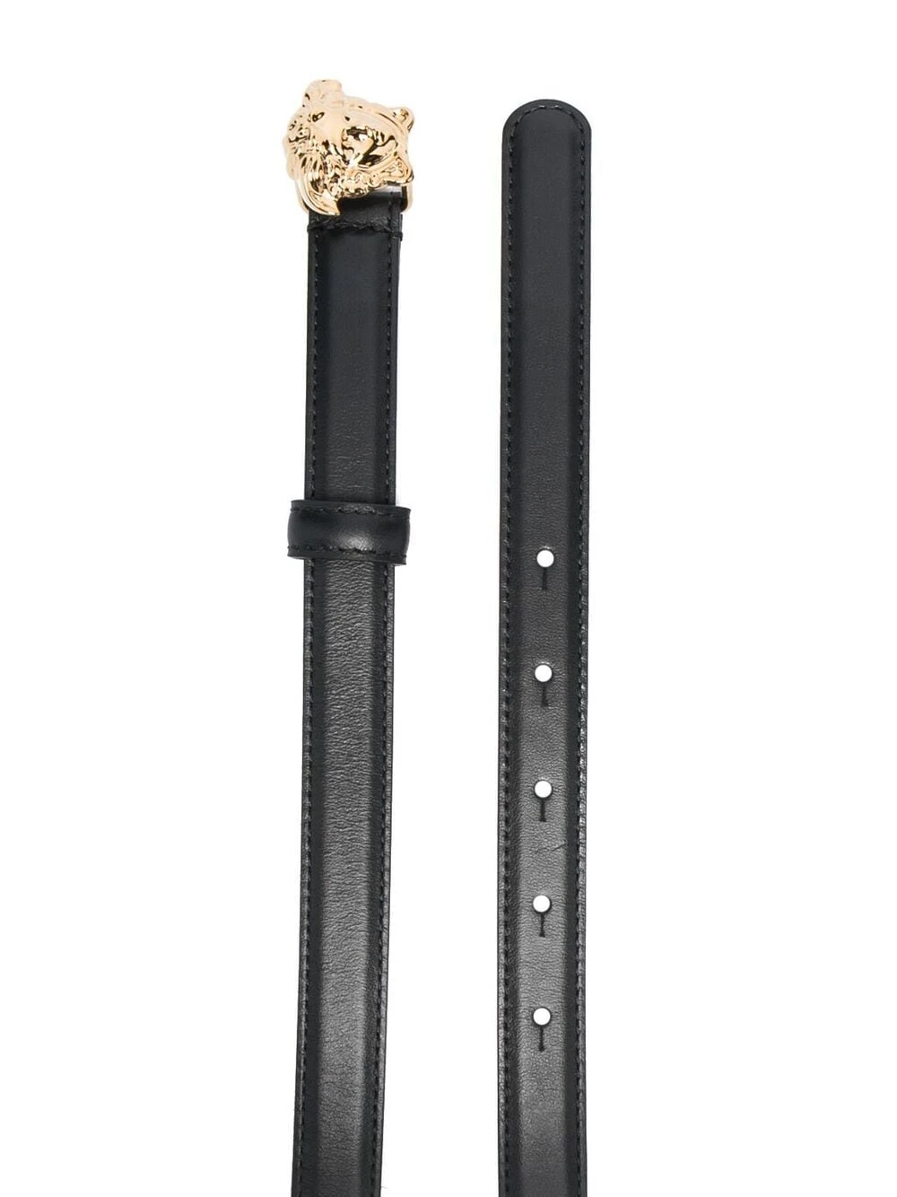 Détail Medusa, taille ajustable, passants de ceinture. MatiÚre : cuir.