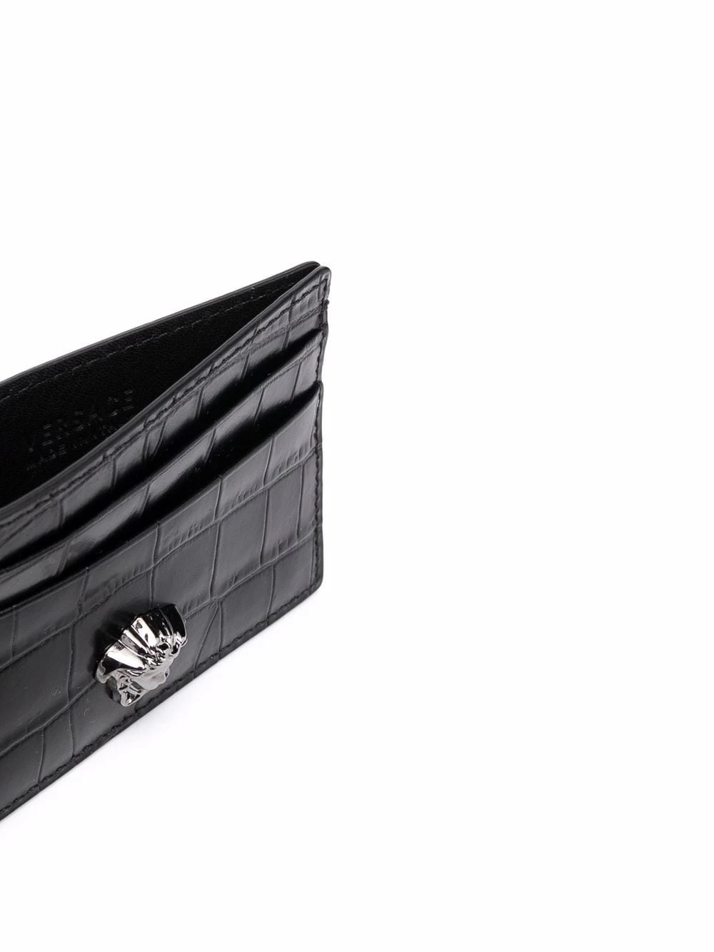 Effet peau de crocodile, détail Medusa, fentes pour carte. Couleur : noir. Matière : cuir.