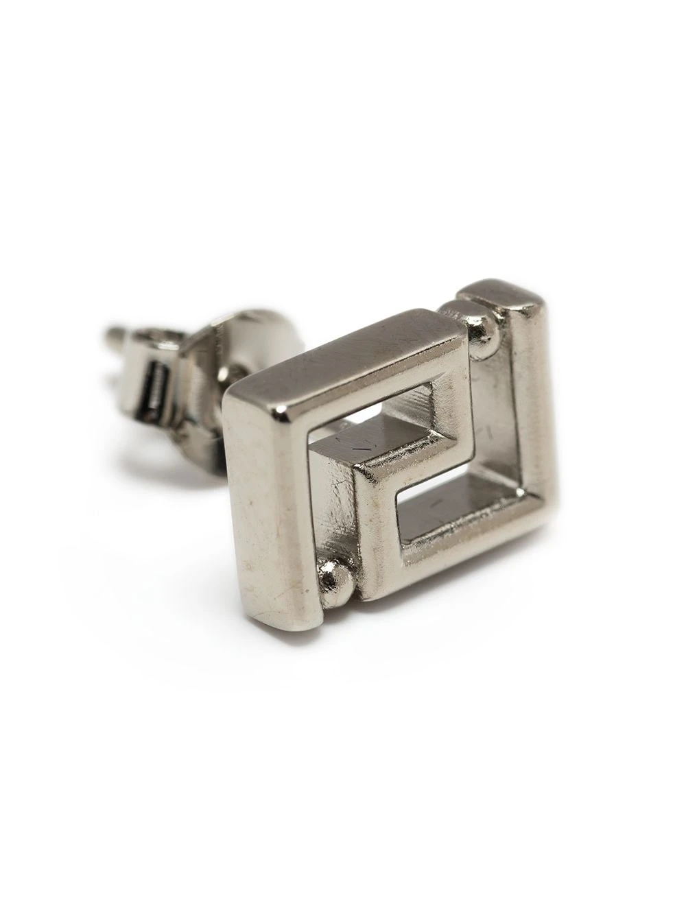 DĂ©tail Greca signature, fermoir papillon, pour oreilles percĂ©es. MatiĂšre : argent. Ces boucles d’oreilles sont vendues par paire.