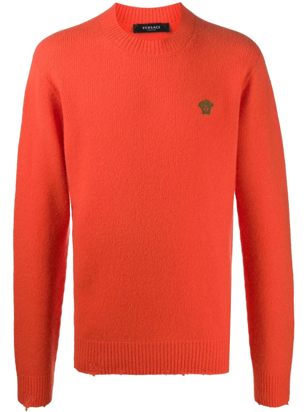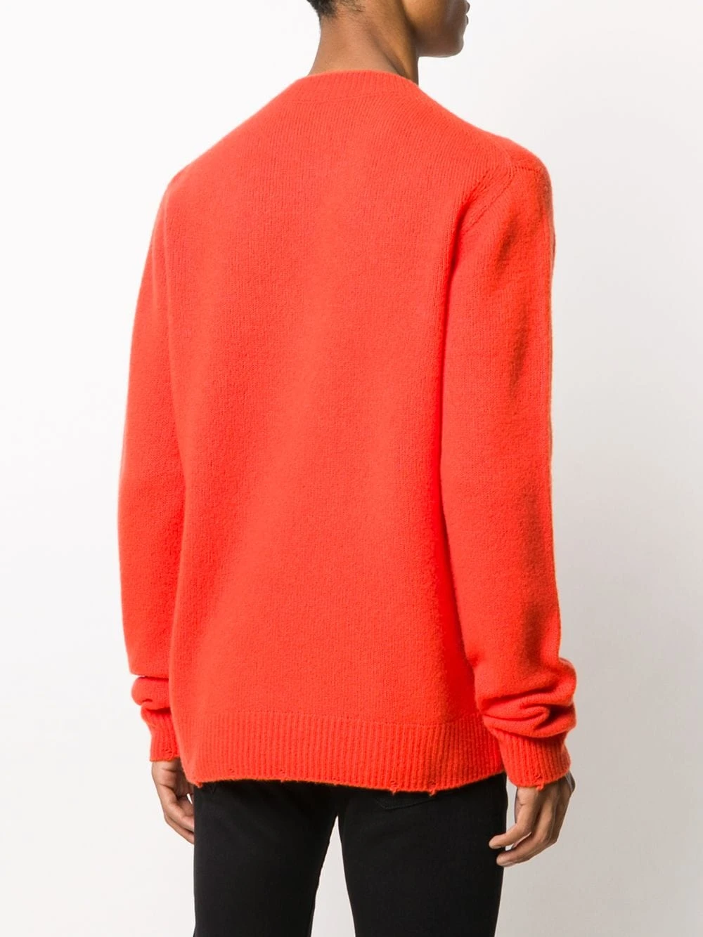 Encolure ras du cou, maille fine, manches longues, poignets nervurés, ourlet nervuré. Couleur : orange.