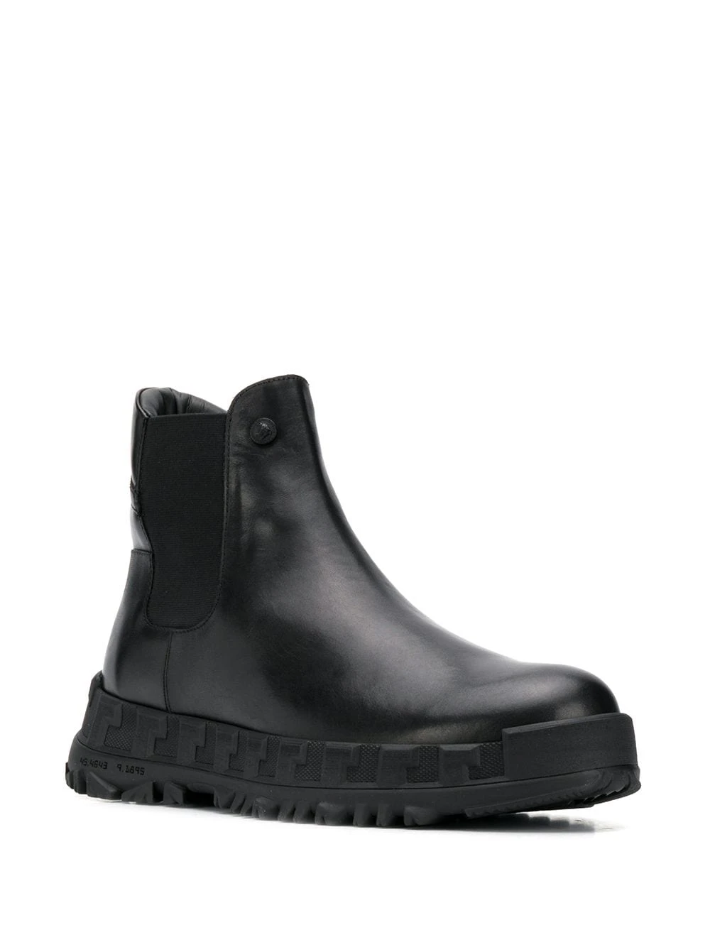 Design à enfiler, bout rond, semelle crantée en caoutchouc. Couleur : noir. Matière : cuir et tissu.