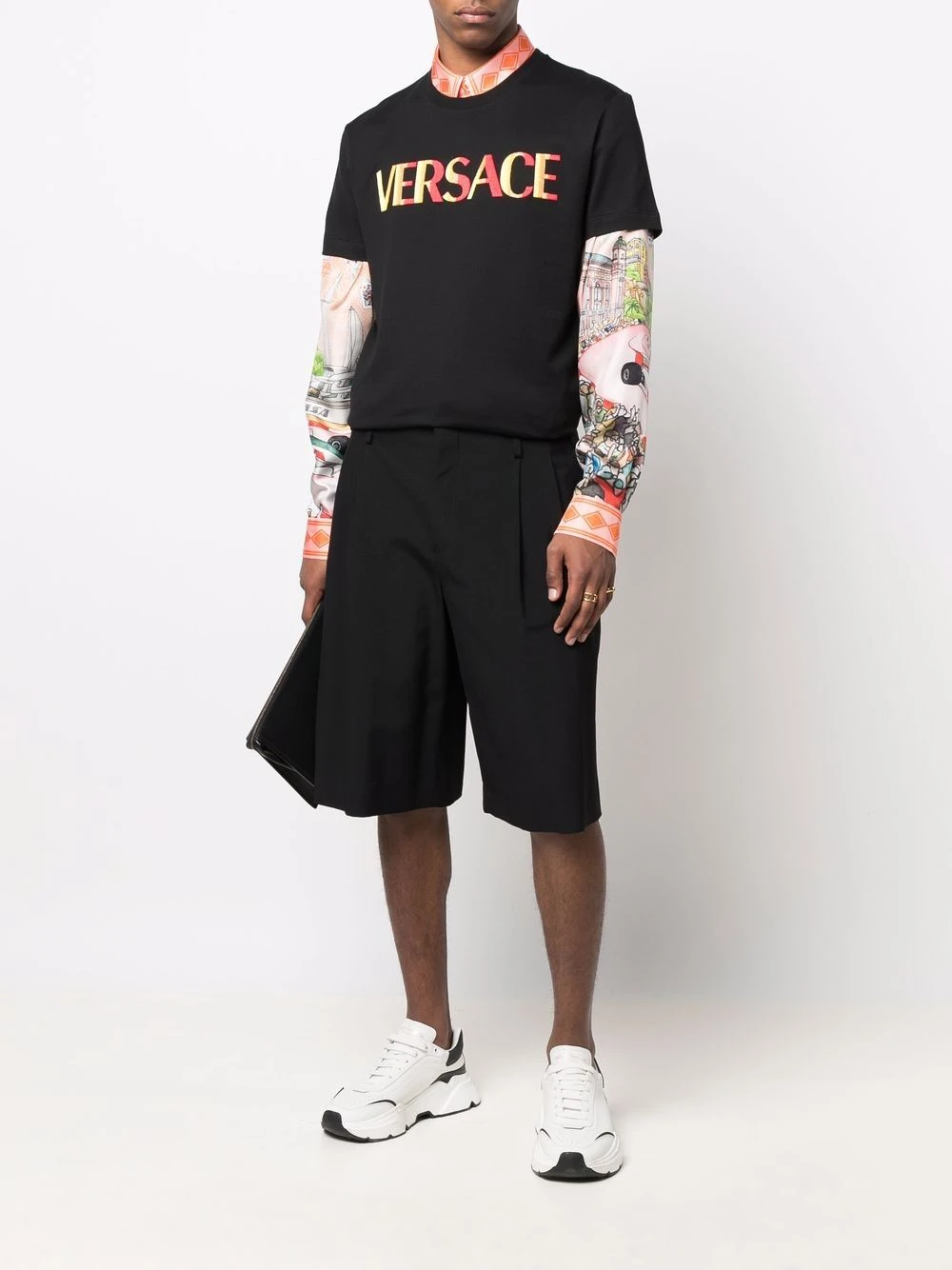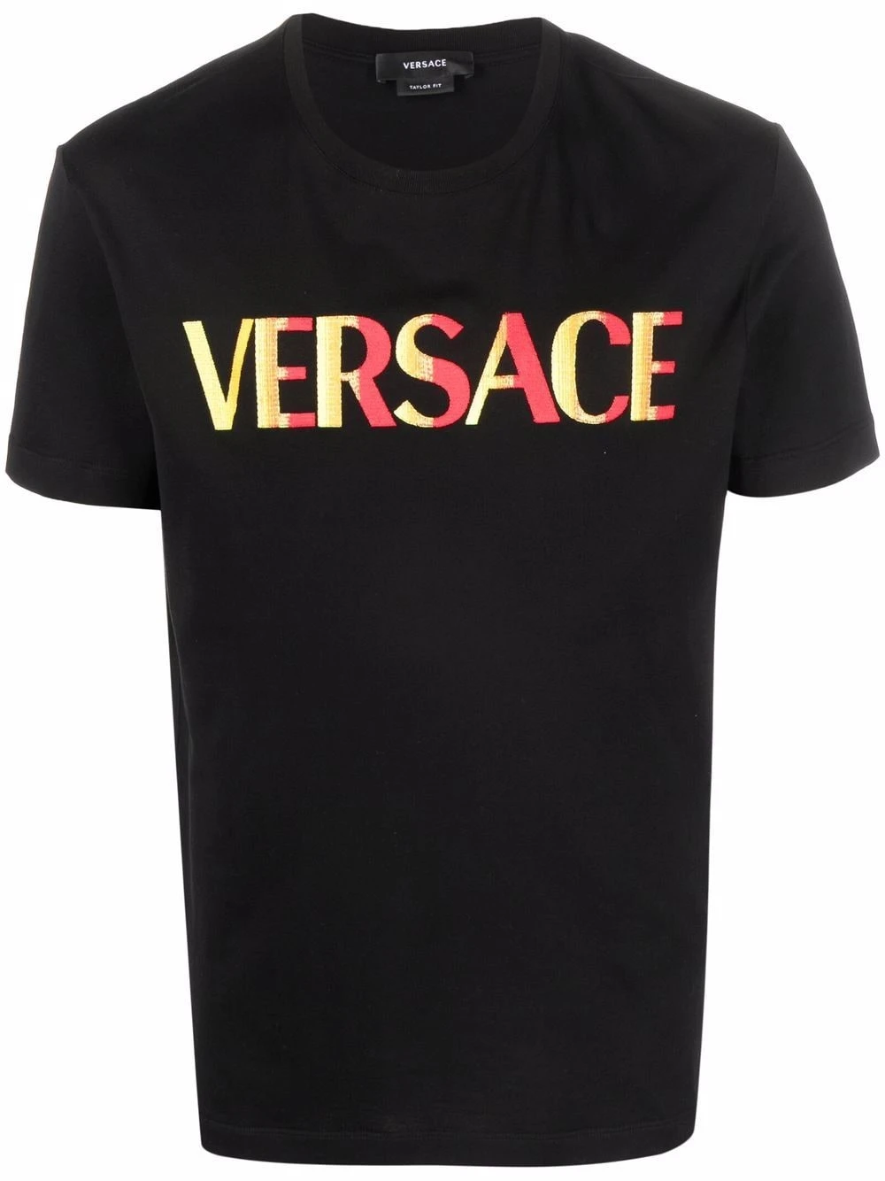 Tricot point jersey, logo brodé sur la poitrine, encolure ras du cou, manches courtes. Couleur : noir. Matière : coton.