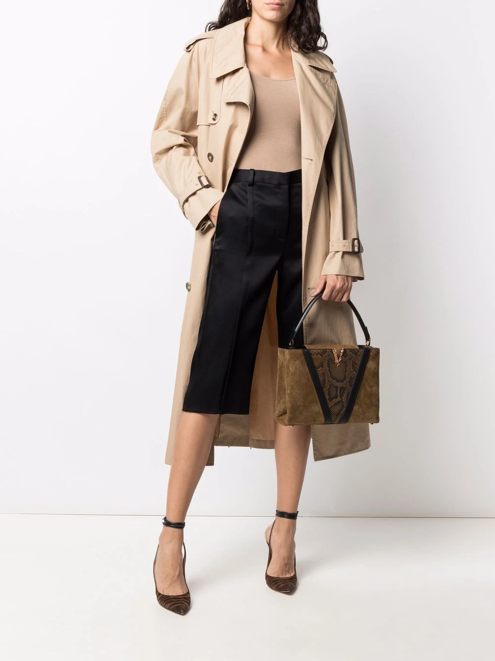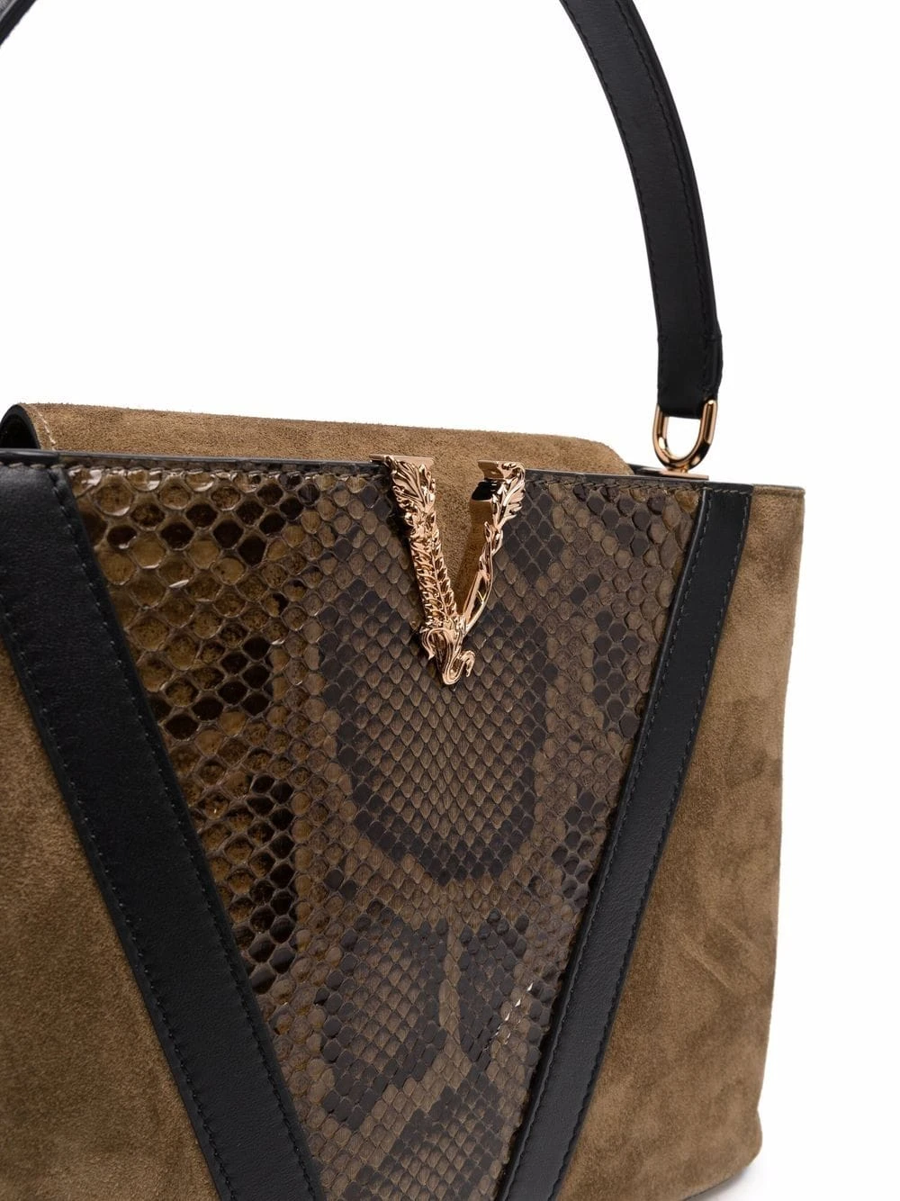 Design à empiècements, plaque logo dorée, imprimé python, anse arrondie, bride porté épaule détachable et ajustable, compartiment intérieur, logo imprimé à l’intérieur, poche intérieure plaquée. Couleur : marron. Matière : cuir.