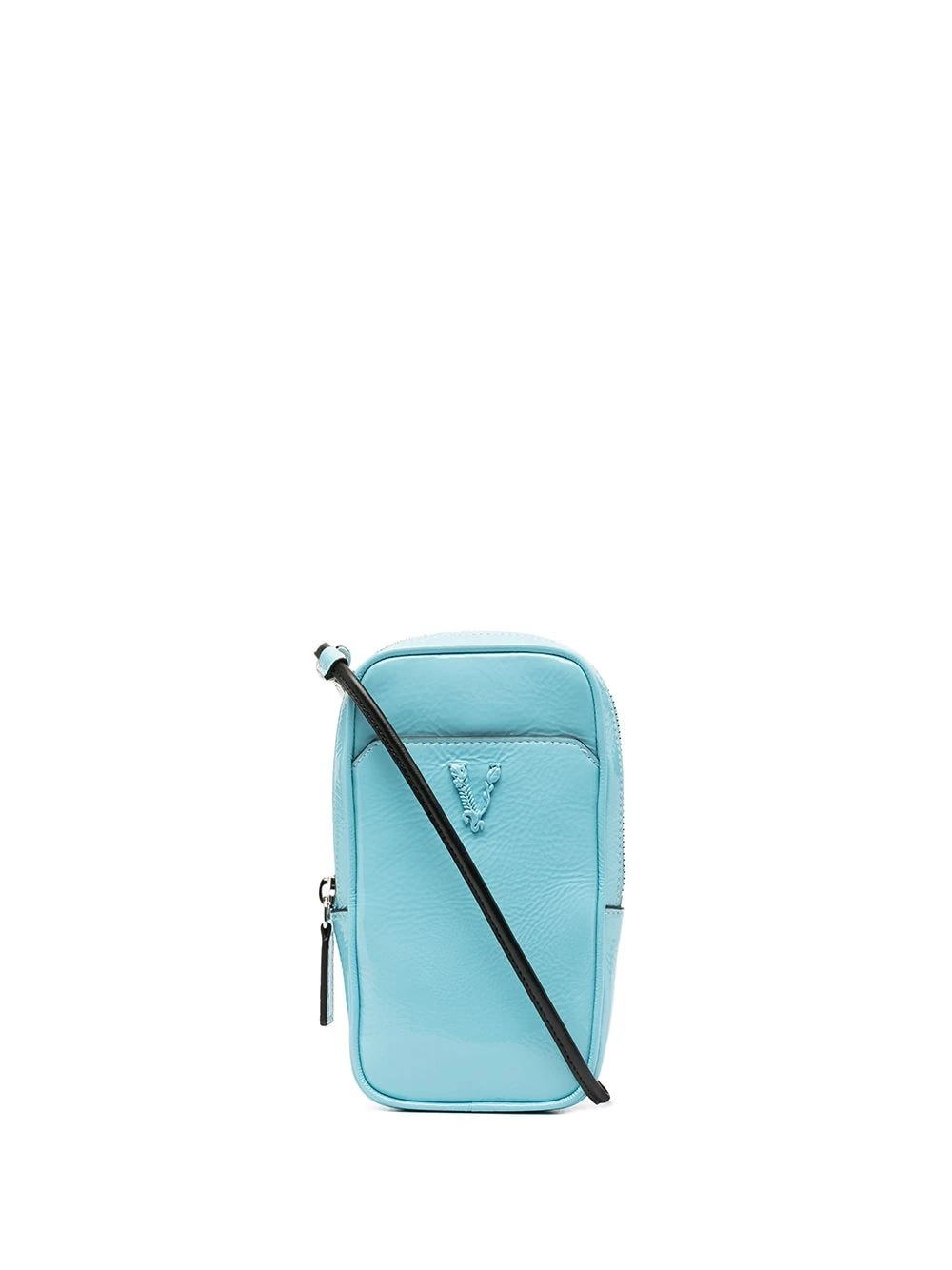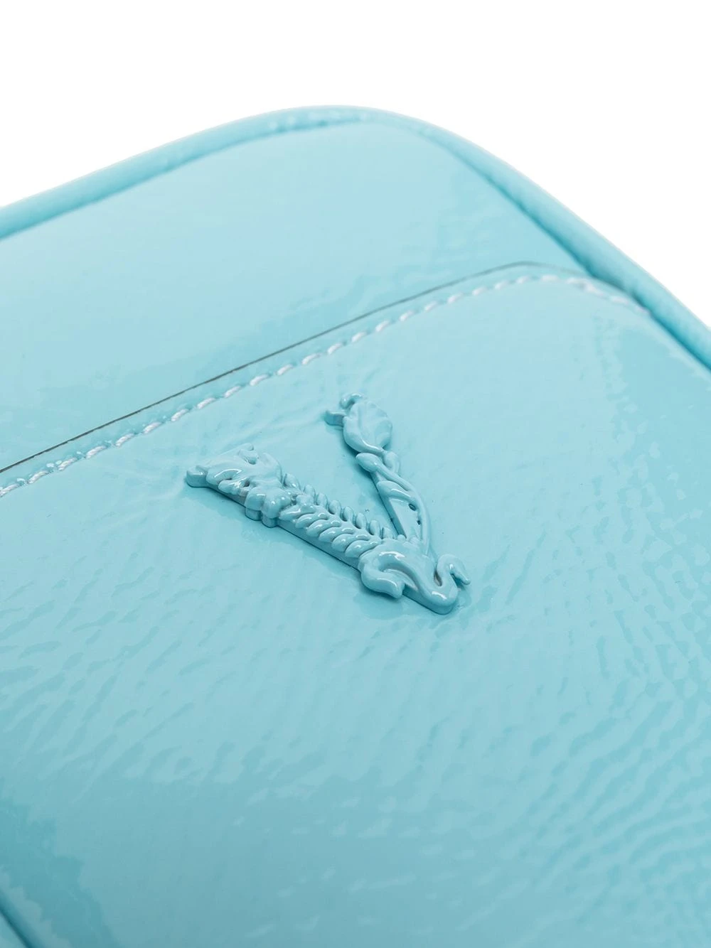 Plaque logo, fermeture zippée sur le dessus, poche plaquée sur le devant, compartiment principal, cordon ajustable. Couleur : bleu. Matière : cuir.