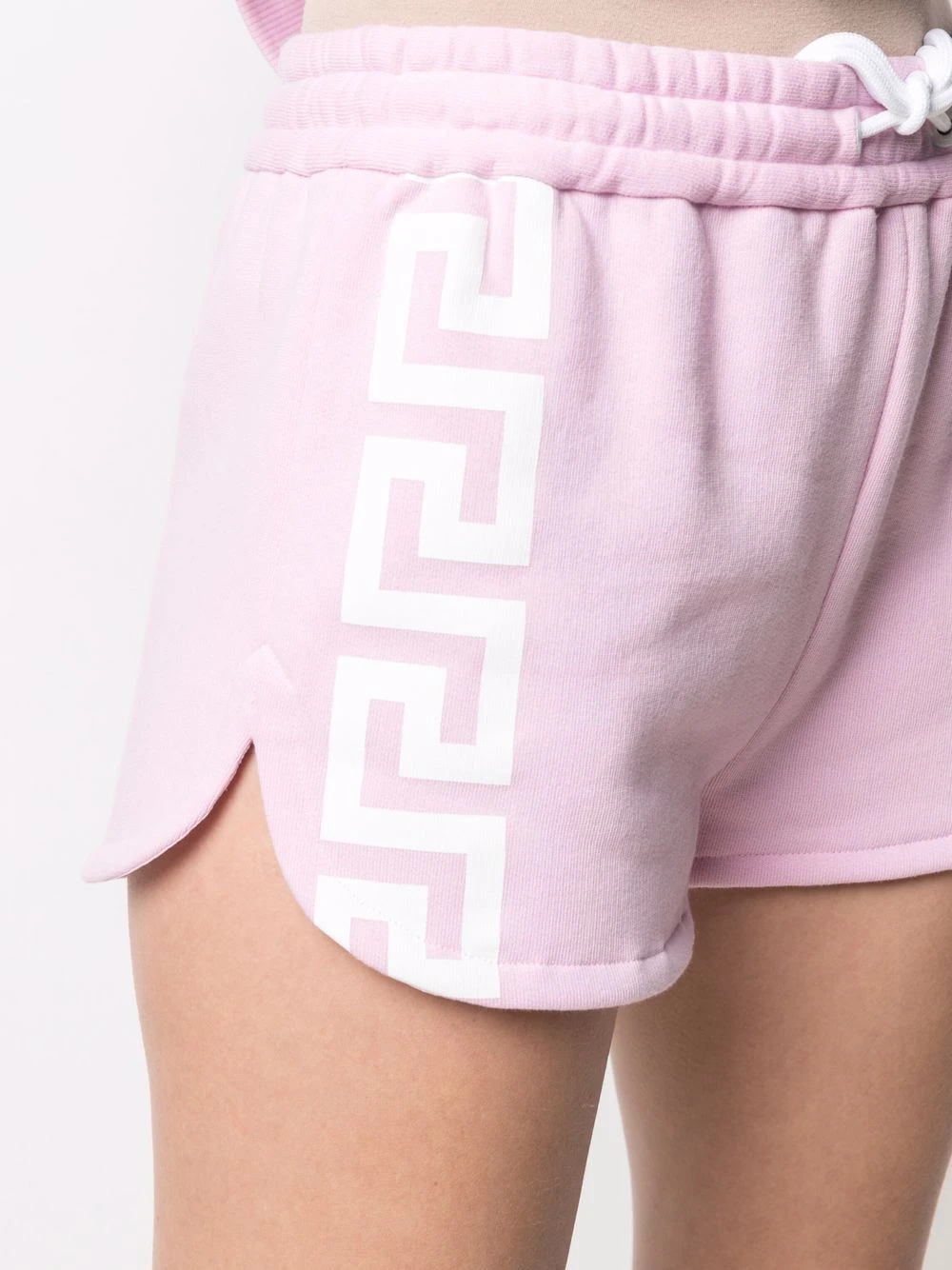 Détail Greca signature, ceinture élastique, lien de resserrage. Couleur : rose. Matière : coton.
