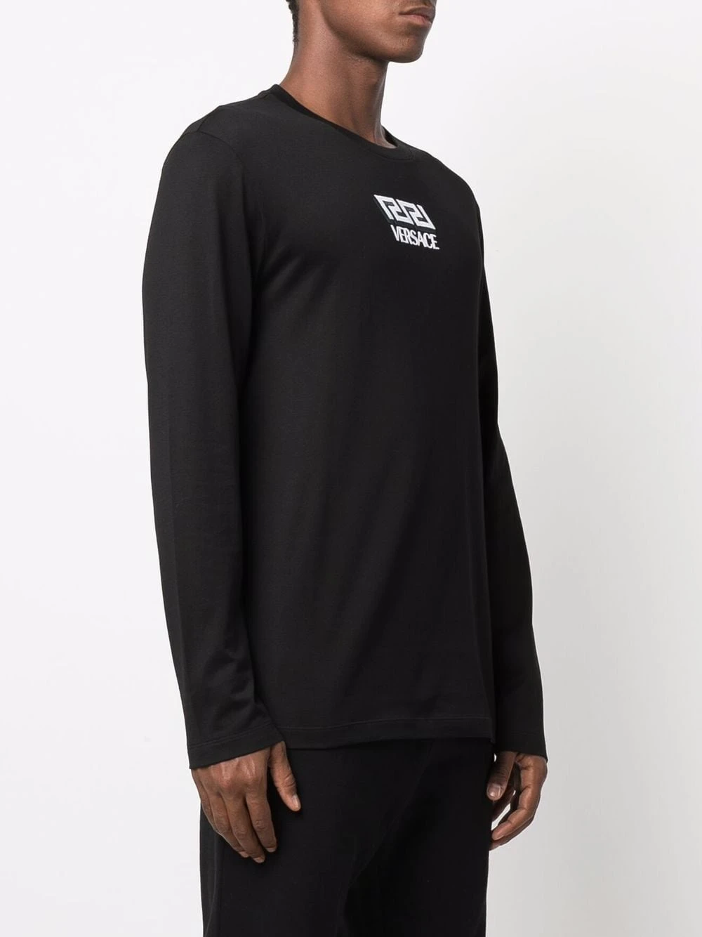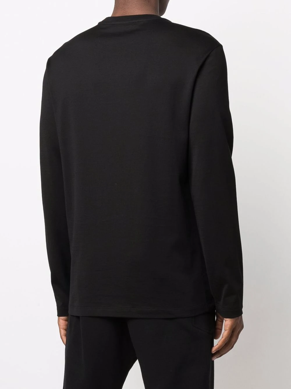 Tricot point jersey, logo imprimé sur le devant, manches longues. Couleur : noir. Matière : coton.