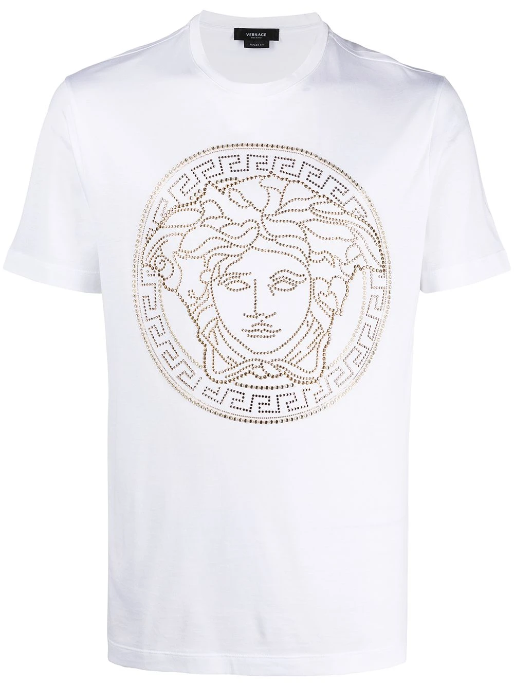 Motif Medusa, encolure ras du cou, manches courtes, ourlet droit. Couleur : blanc. Matière : coton.