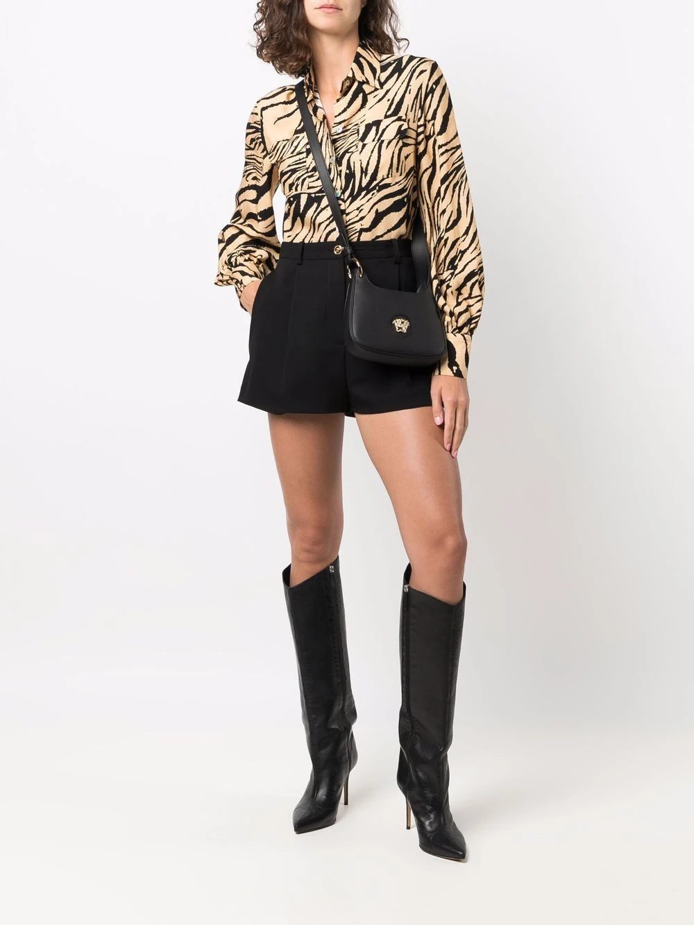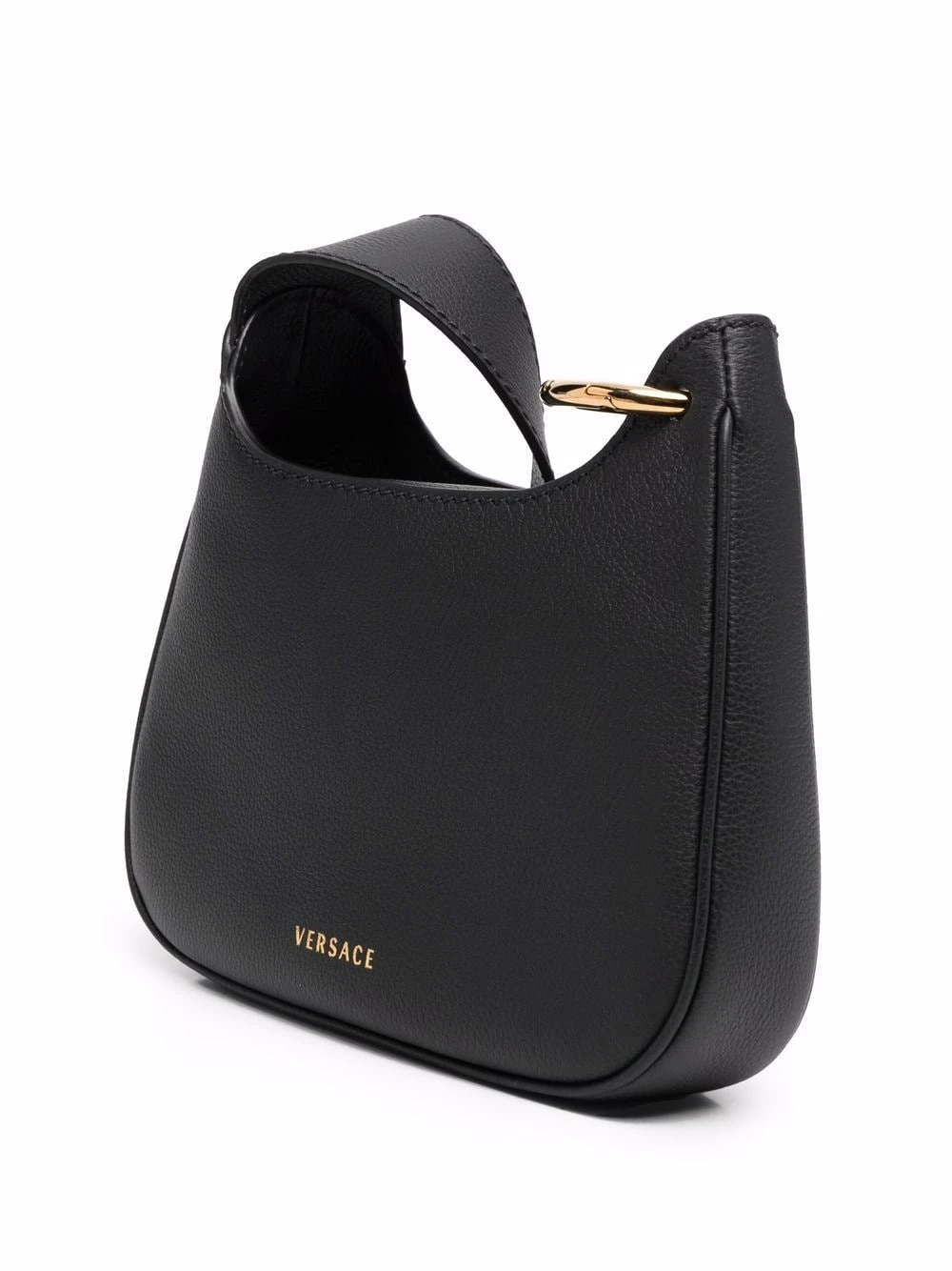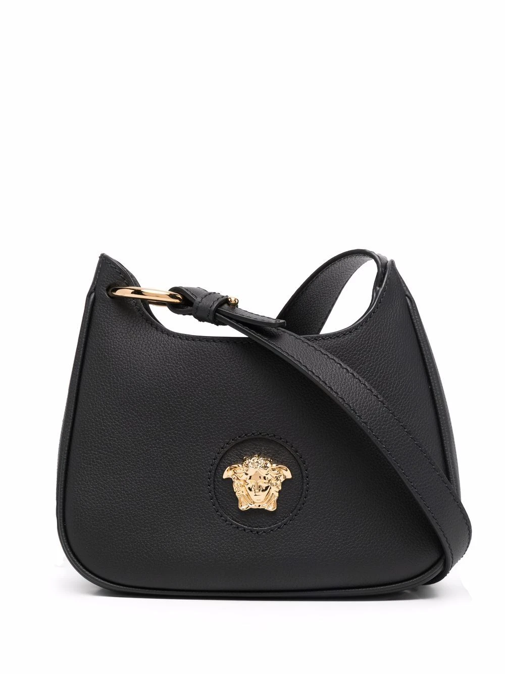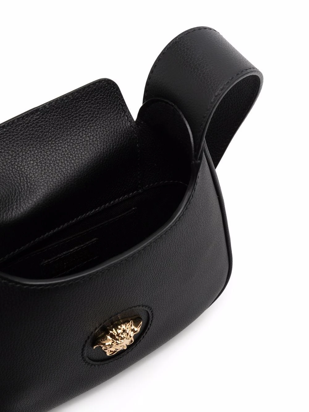 Texture grainée, logo imprimé à l’arrière, motif Medusa, bride porté épaule ajustable. Couleur : noir. Matière : cuir.