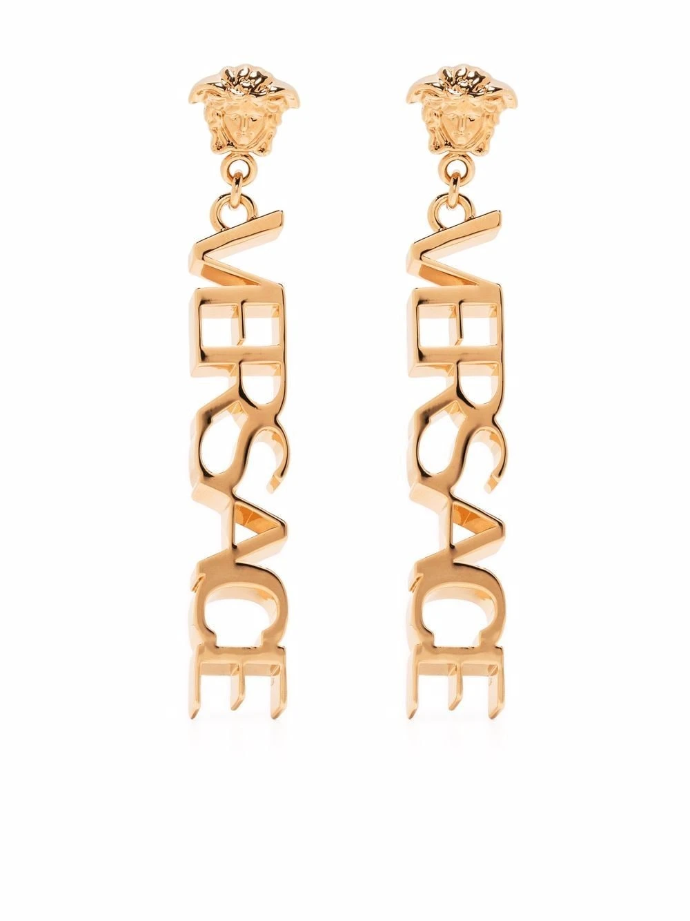 Fini poli, plaque logo dorée, motif Medusa, pour oreilles percées. Ces boucles d’oreilles sont vendues par paire.