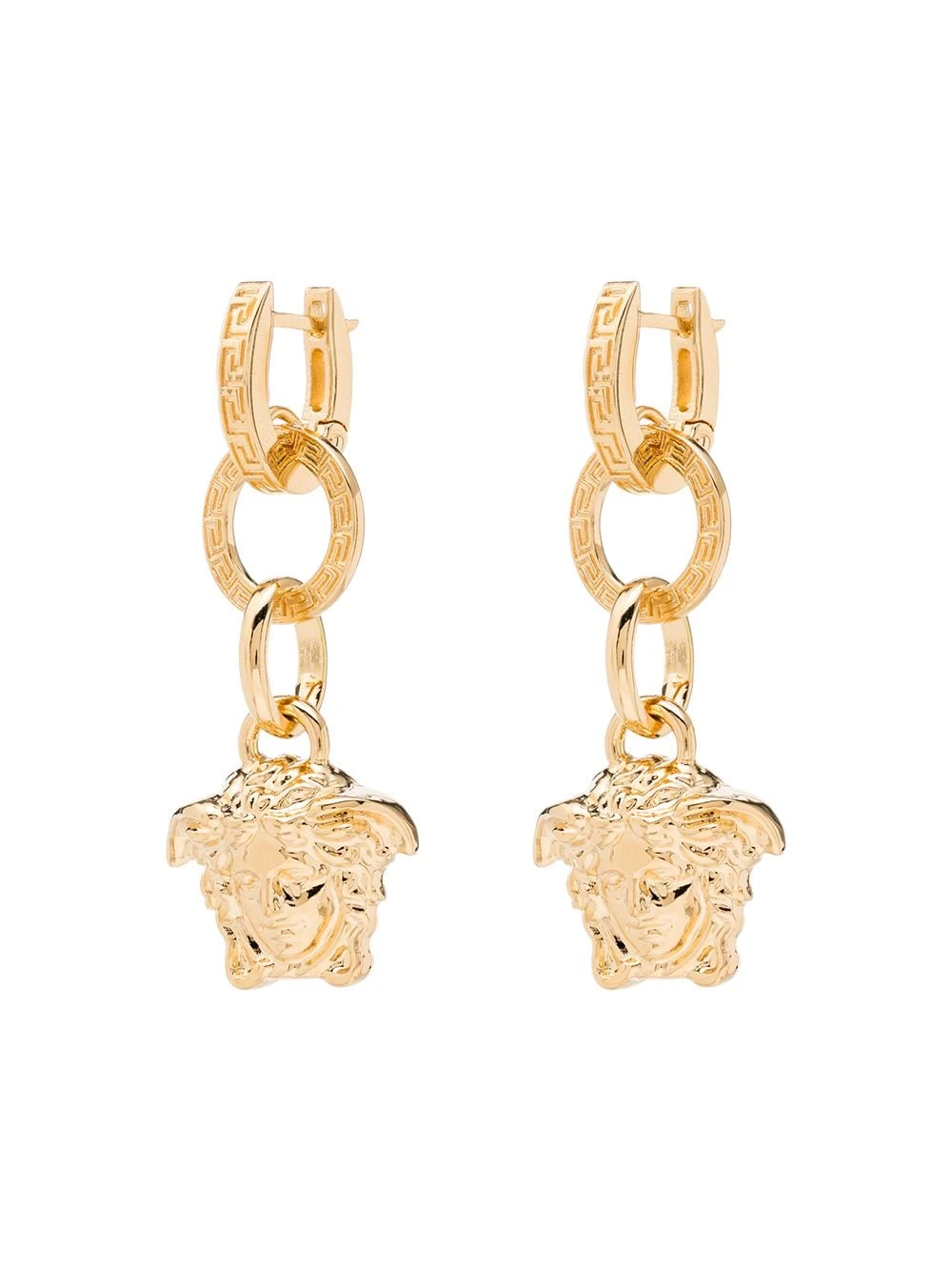 Boucles d’oreilles Medusa Versace avec un logo gravé et a Medusa head logo embellishment.