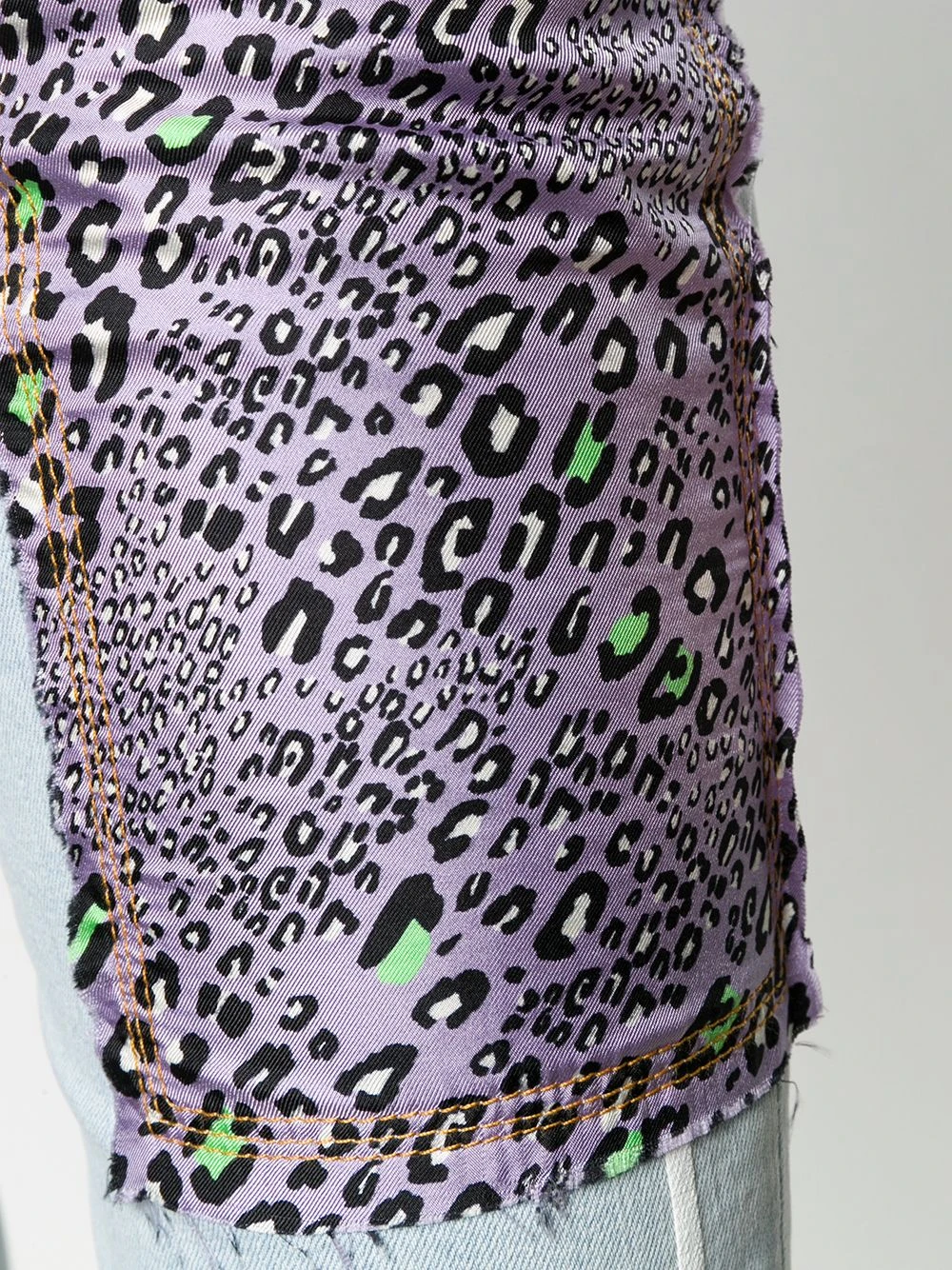 Design patchwork, imprimé Barocco signature, coupe droite, fermeture à zip et boutons sur le devant, taille mi-haute, 5 poches classiques, passants de ceinture.