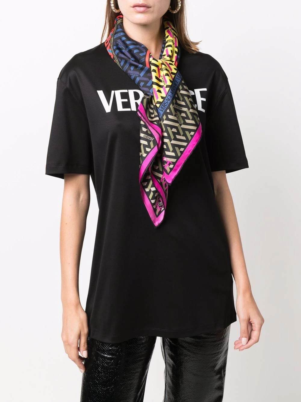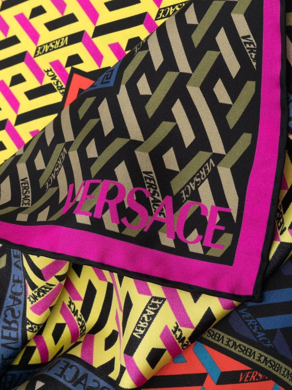 Détail Greca signature, design à empiècements colour block, bords finis, empiècements géométriques. Couleur : multicolore. Matière : soie.