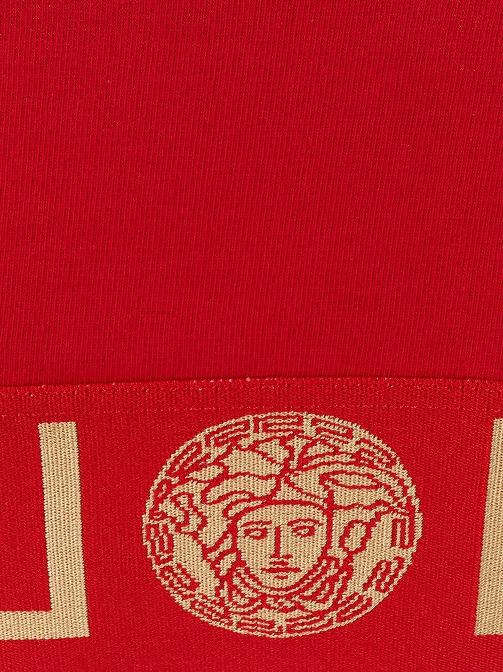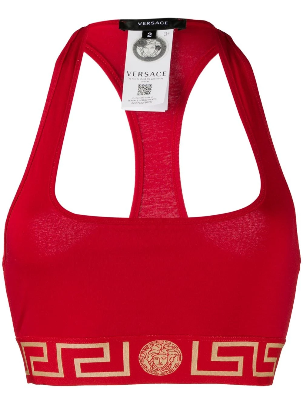 Soutien-gorge à logo Medusa en coton YOUNG VERSACE avec dos nageur, encolure carrée, coupe stretch, coupe crop et détail Medusa. Les sous-vêtements et la lingerie doivent être essayés par dessus vos propres vêtements.
