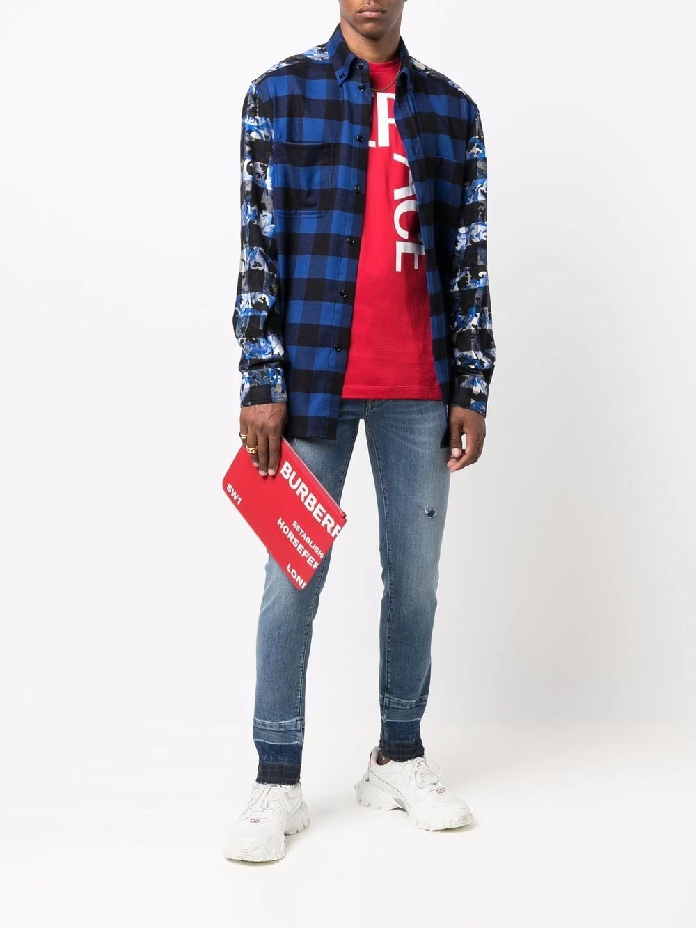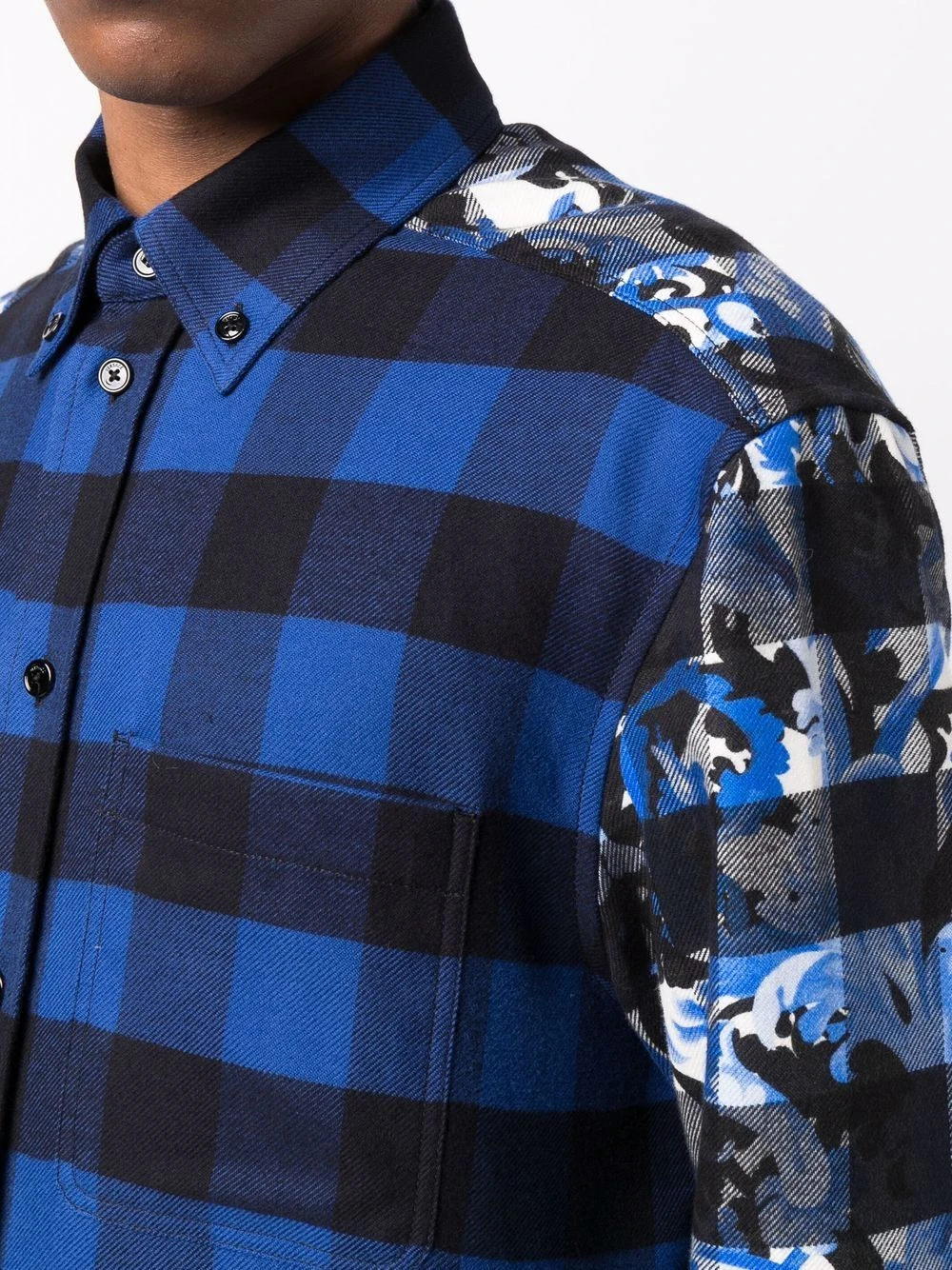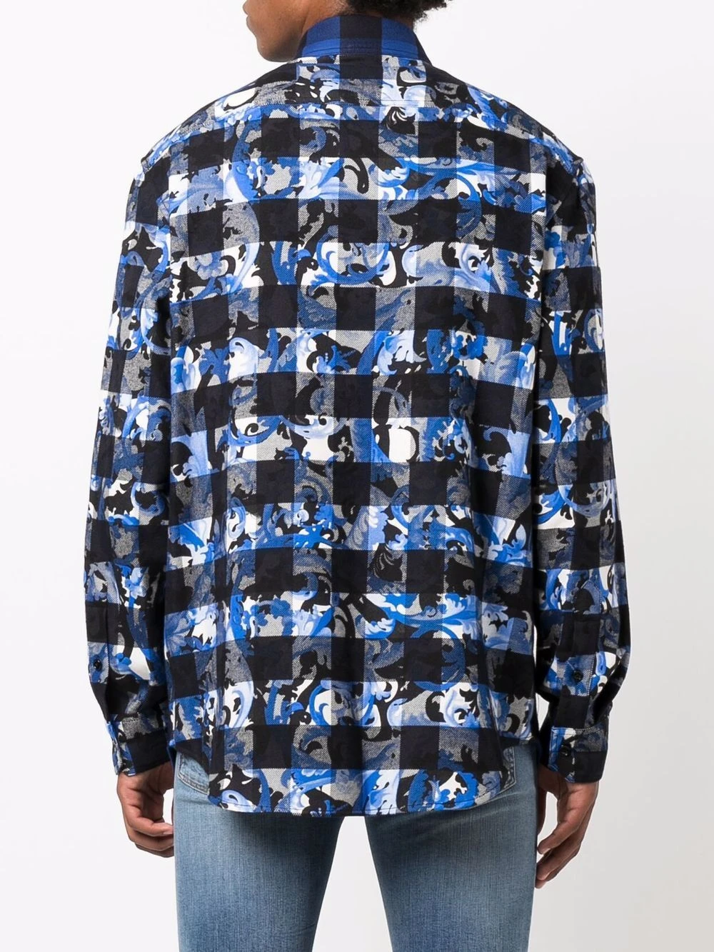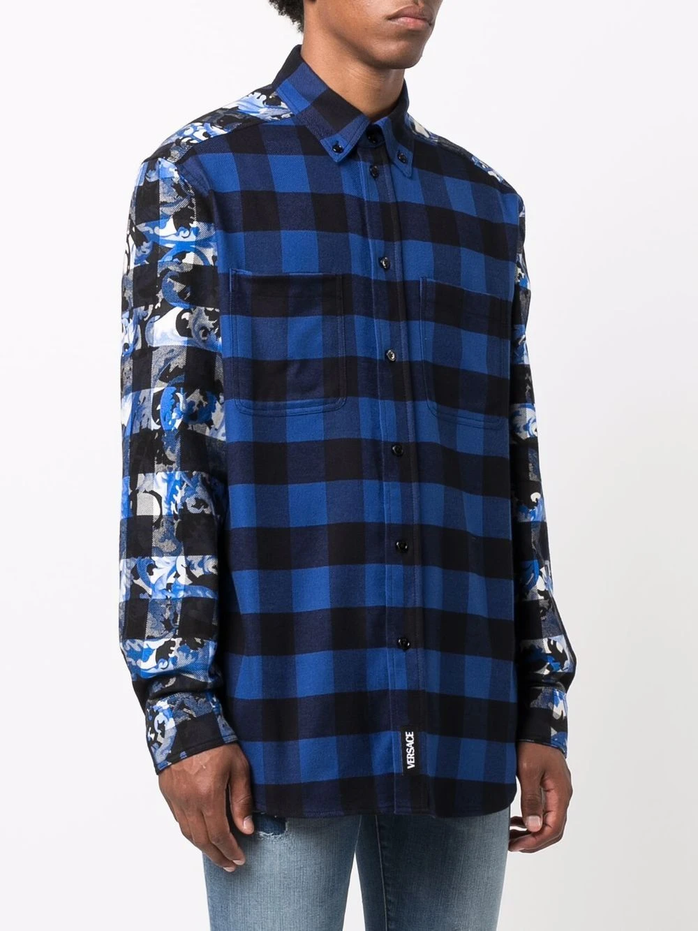 Carreaux Plaid, imprimé Barocco signature, col boutonné, boutonnière sur le devant, poignets boutonnés. Matière : coton.