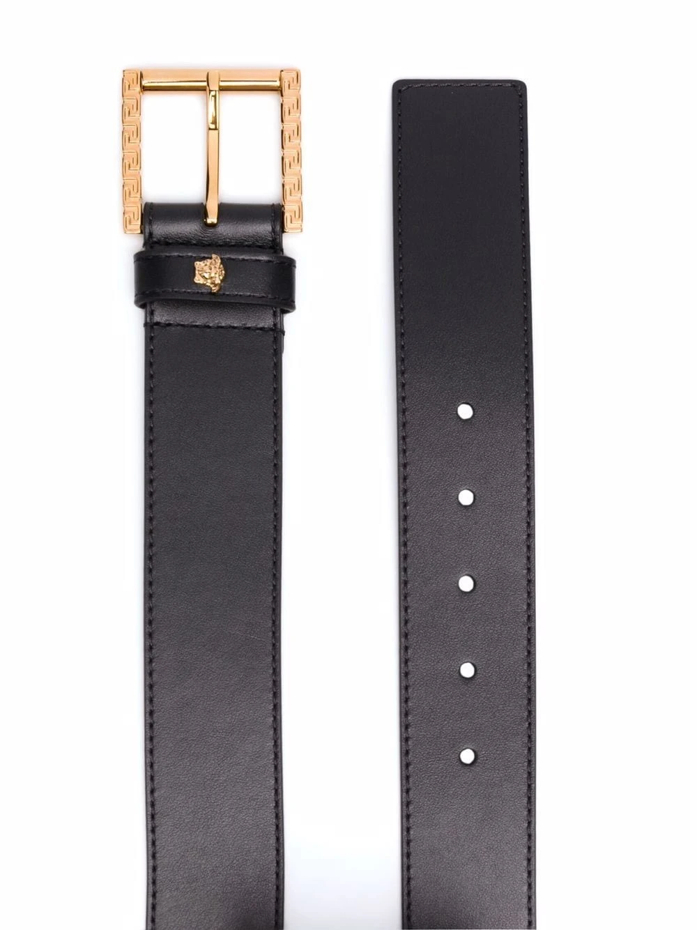 Détail Medusa, détail Greca signature, fermeture à boucle. Couleur : noir. Matière : cuir.