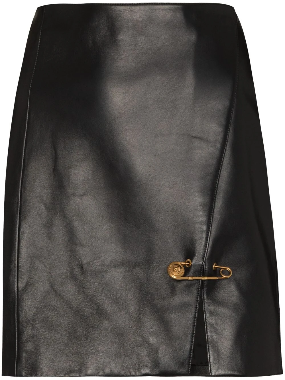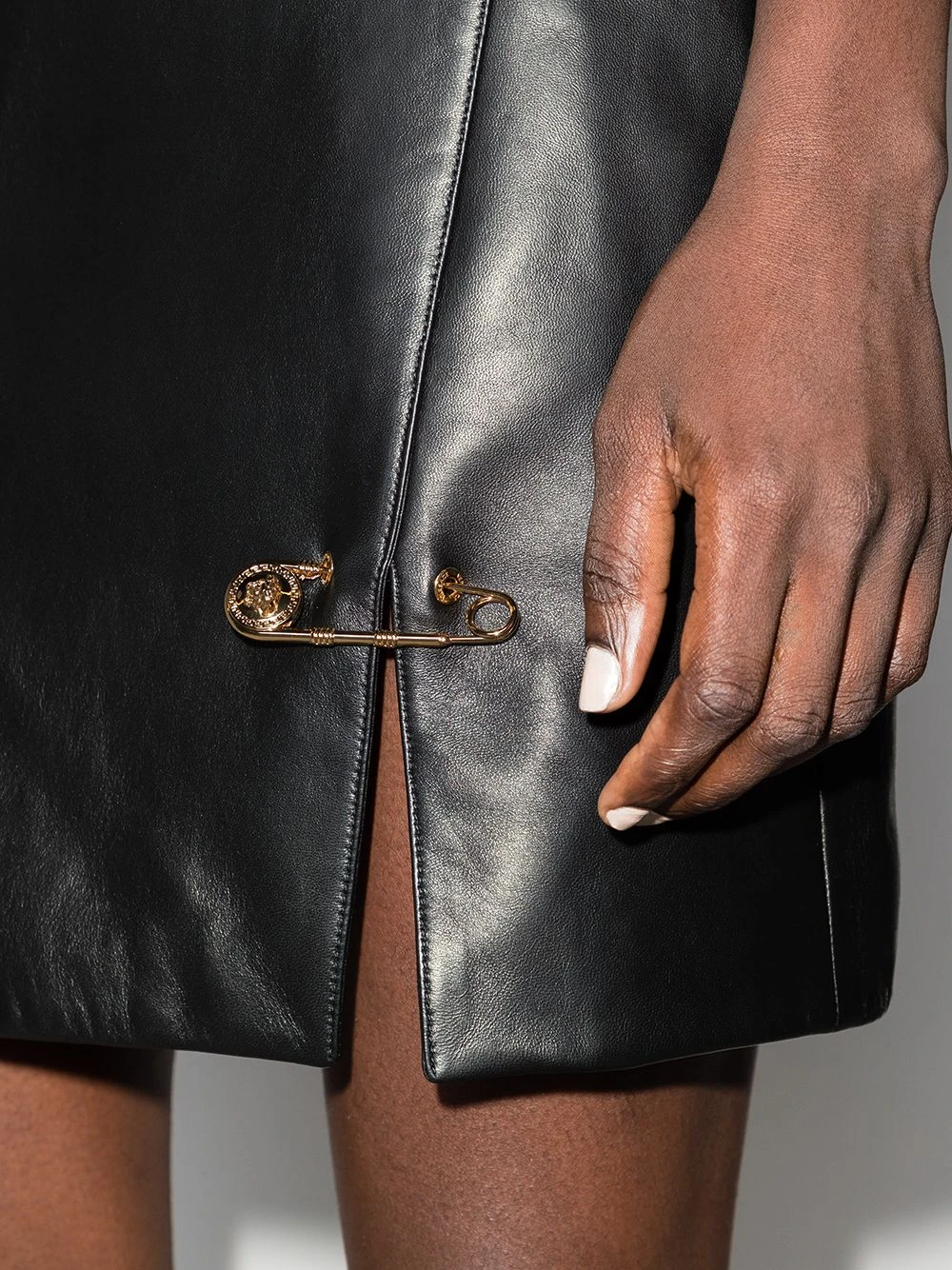 Design portefeuille, détail d’épingle à nourrice, fente latérale, ourlet droit, fermeture zippée à l’arrière. Couleur : noir.
