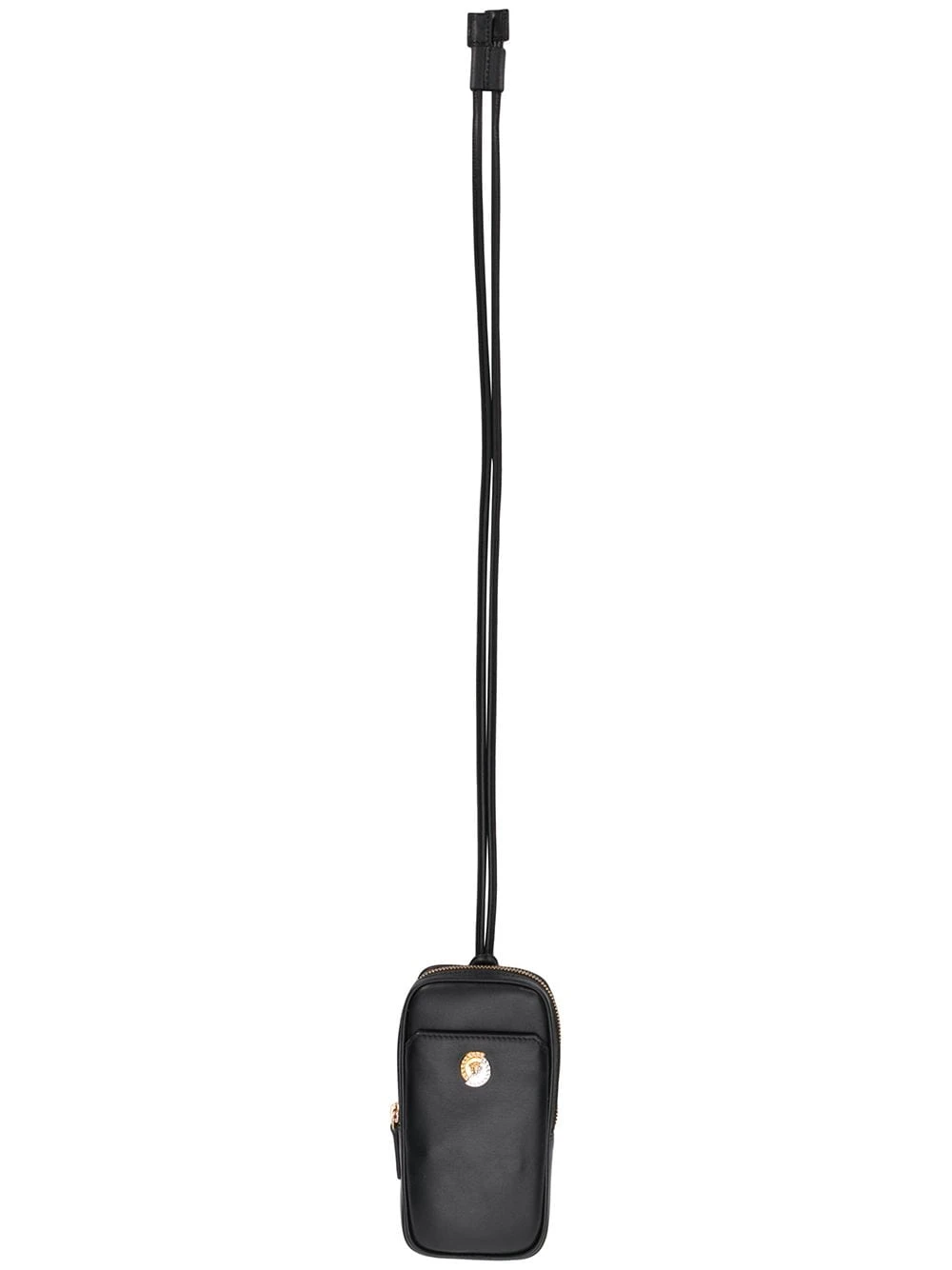 Motif Medusa, fermeture zippée sur le dessus, poche plaquée sur le devant, compartiment principal. Couleur : noir. Matière : cuir.