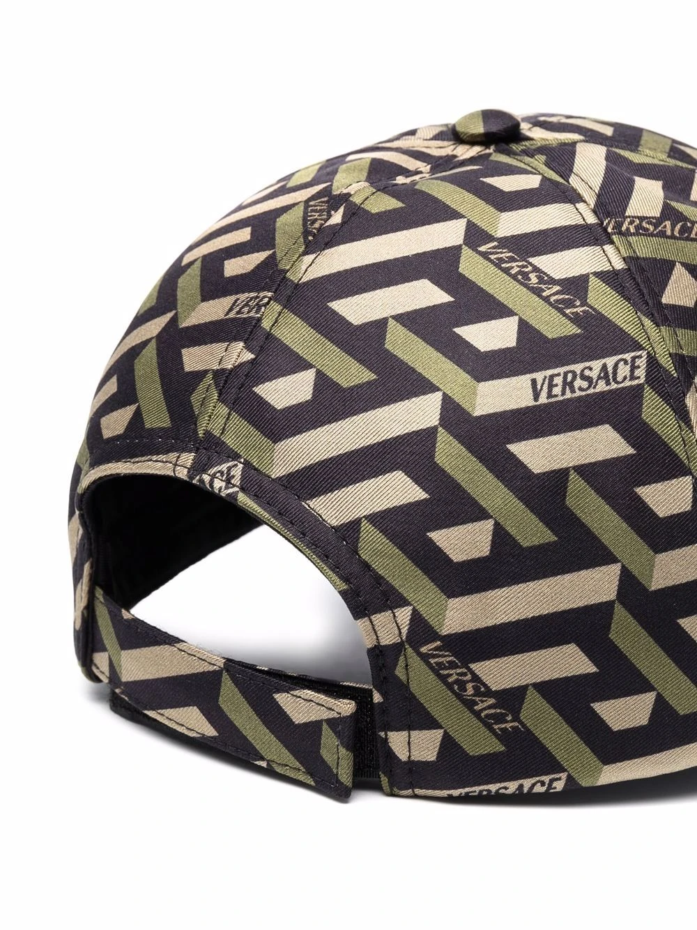 Imprimé graphique intégral, imprimé monogrammé, design à six empiècements, bord fin incurvé, taille ajustable.
