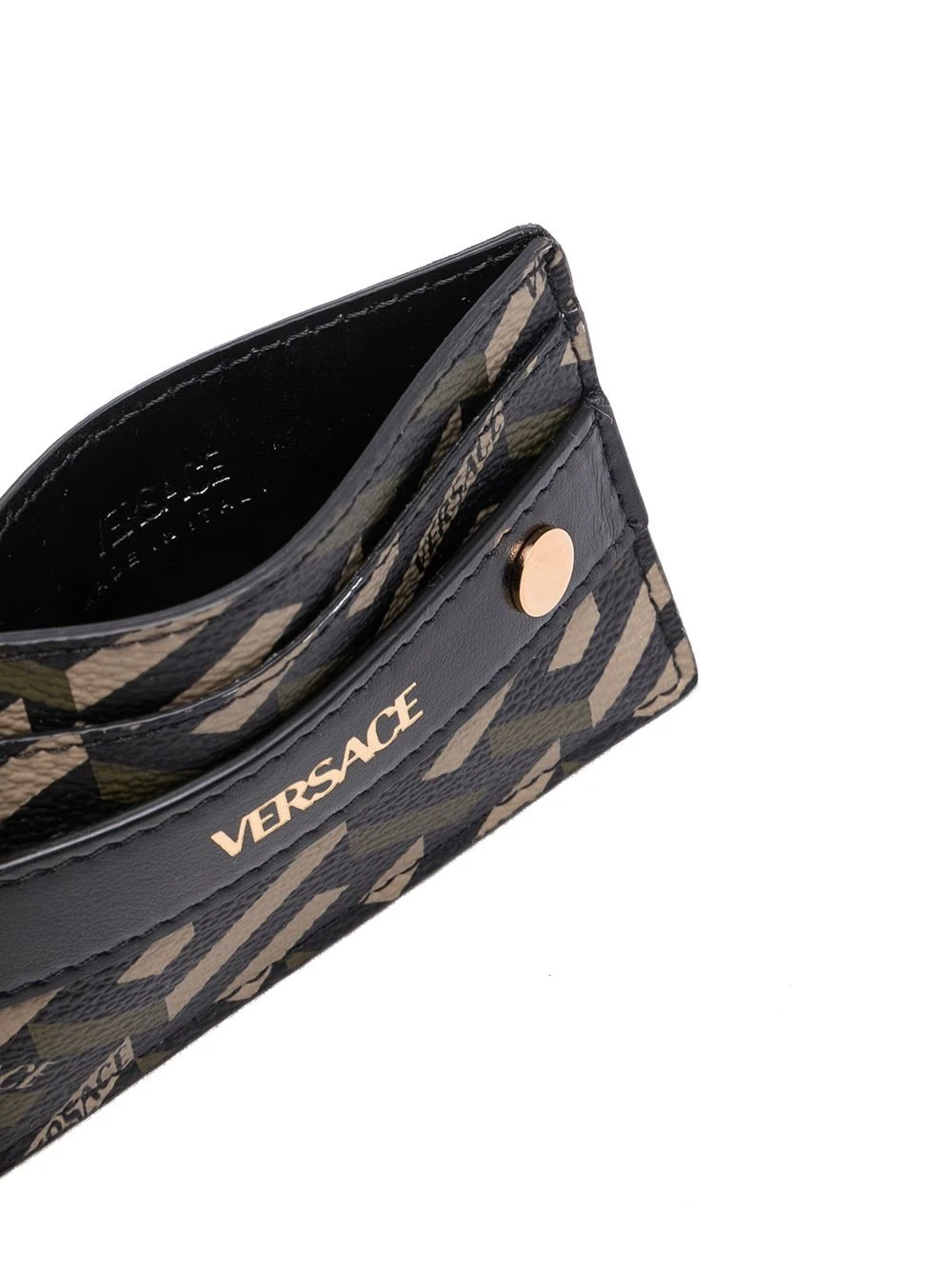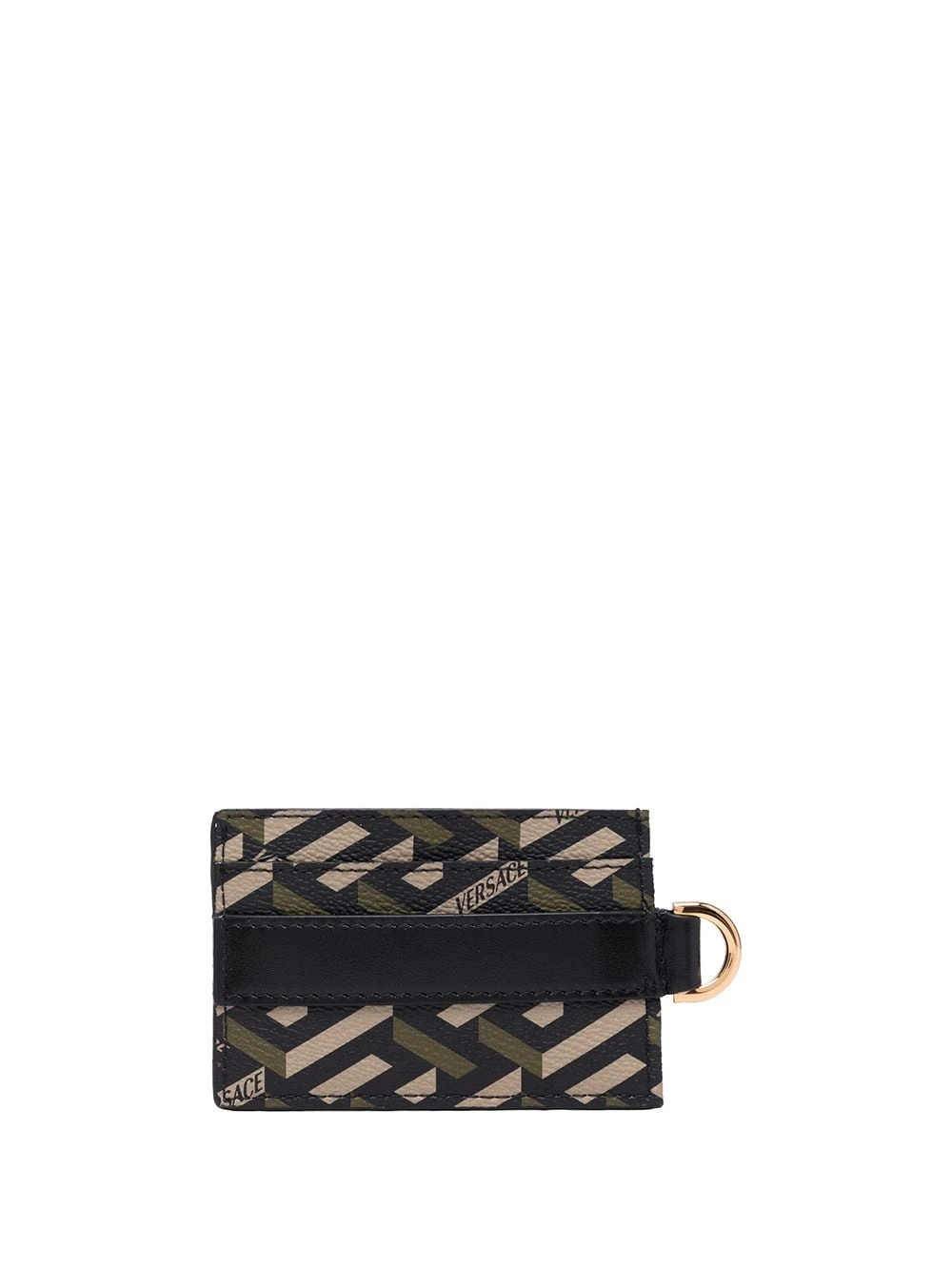 Imprimé monogrammé, plaque logo dorée, fentes pour carte. Couleur : vert. Matière : cuir.