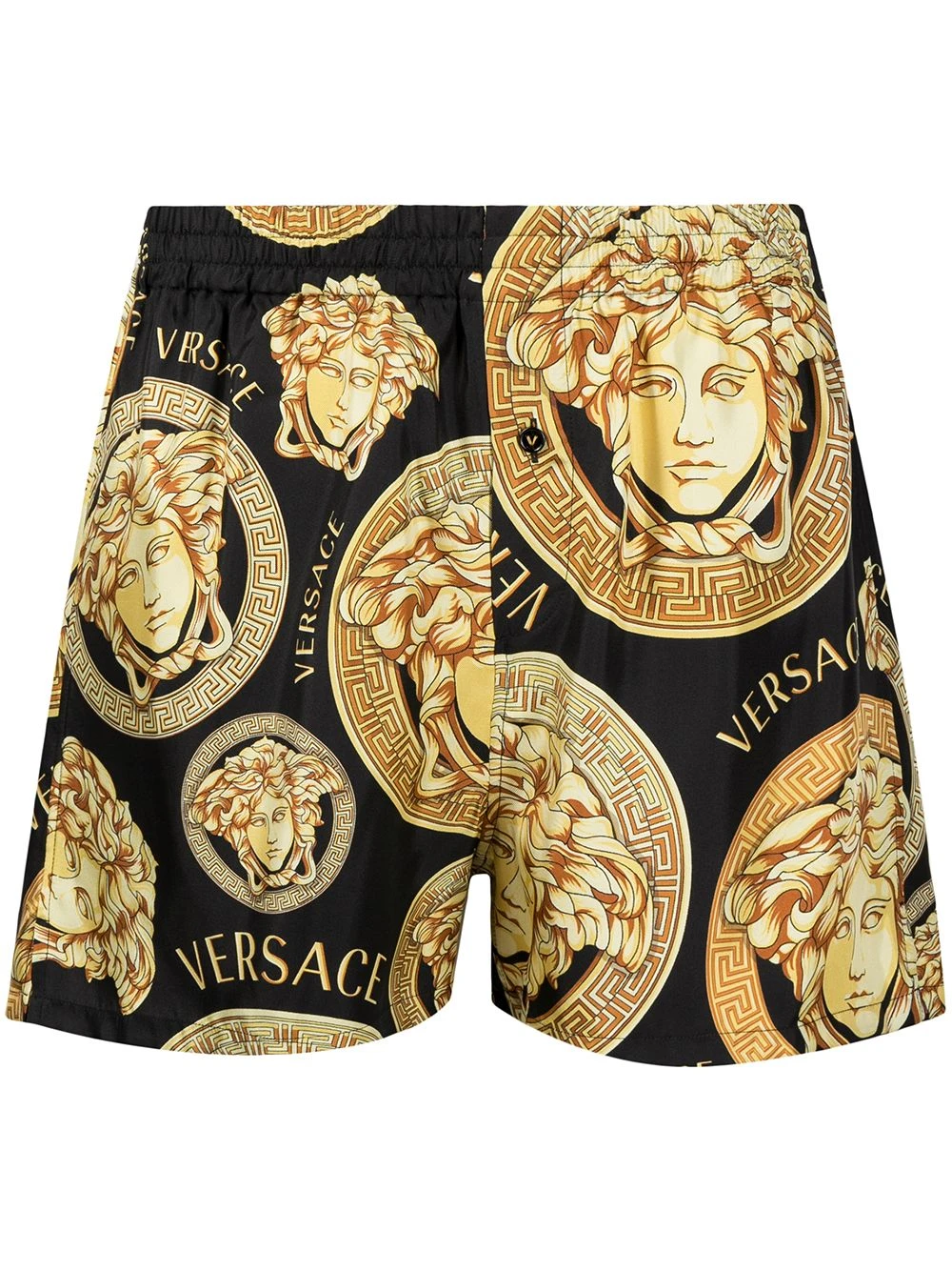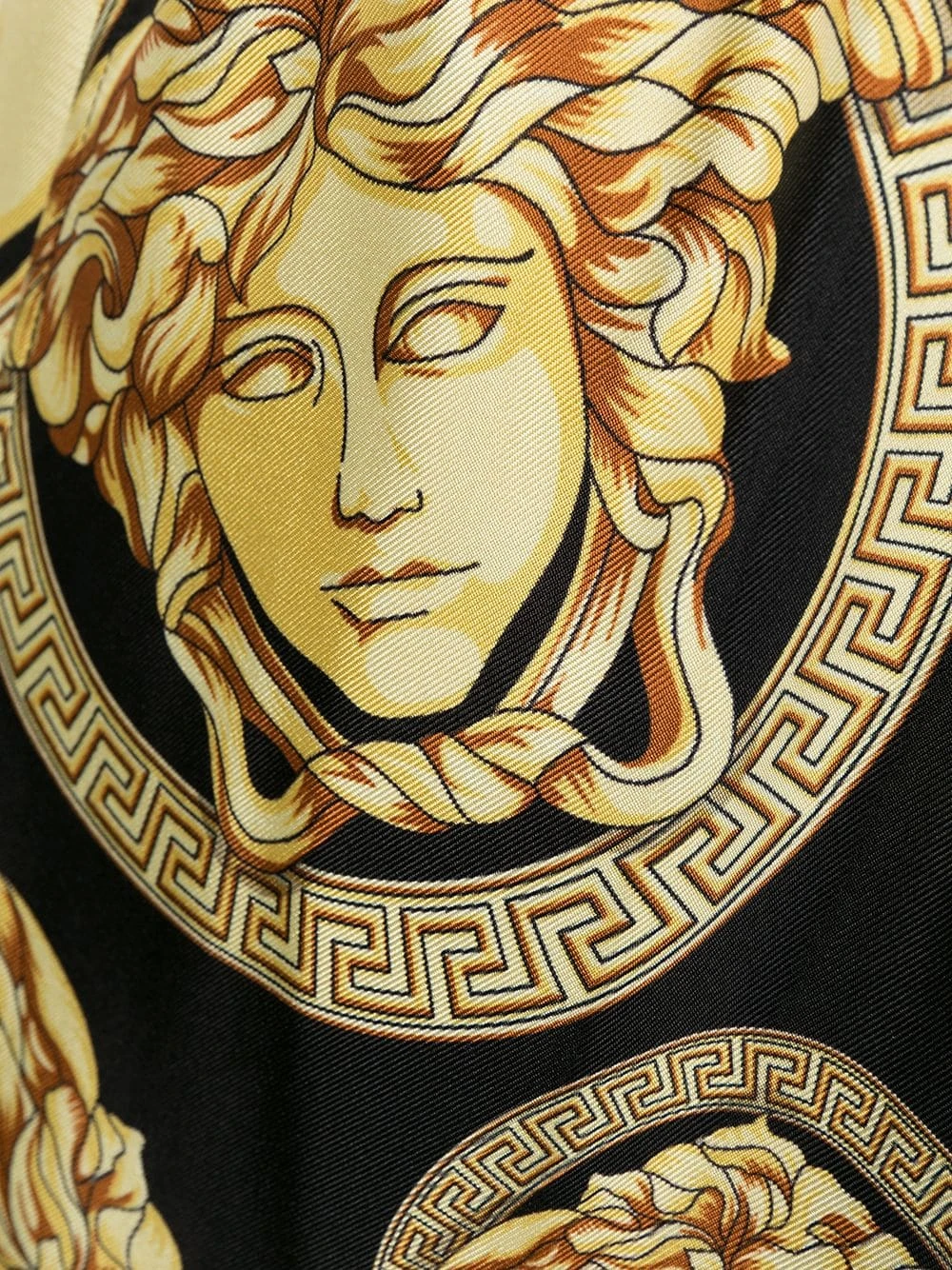 Motif Medusa, ceinture élastique, boutonnière sur le devant. Matière : soie.