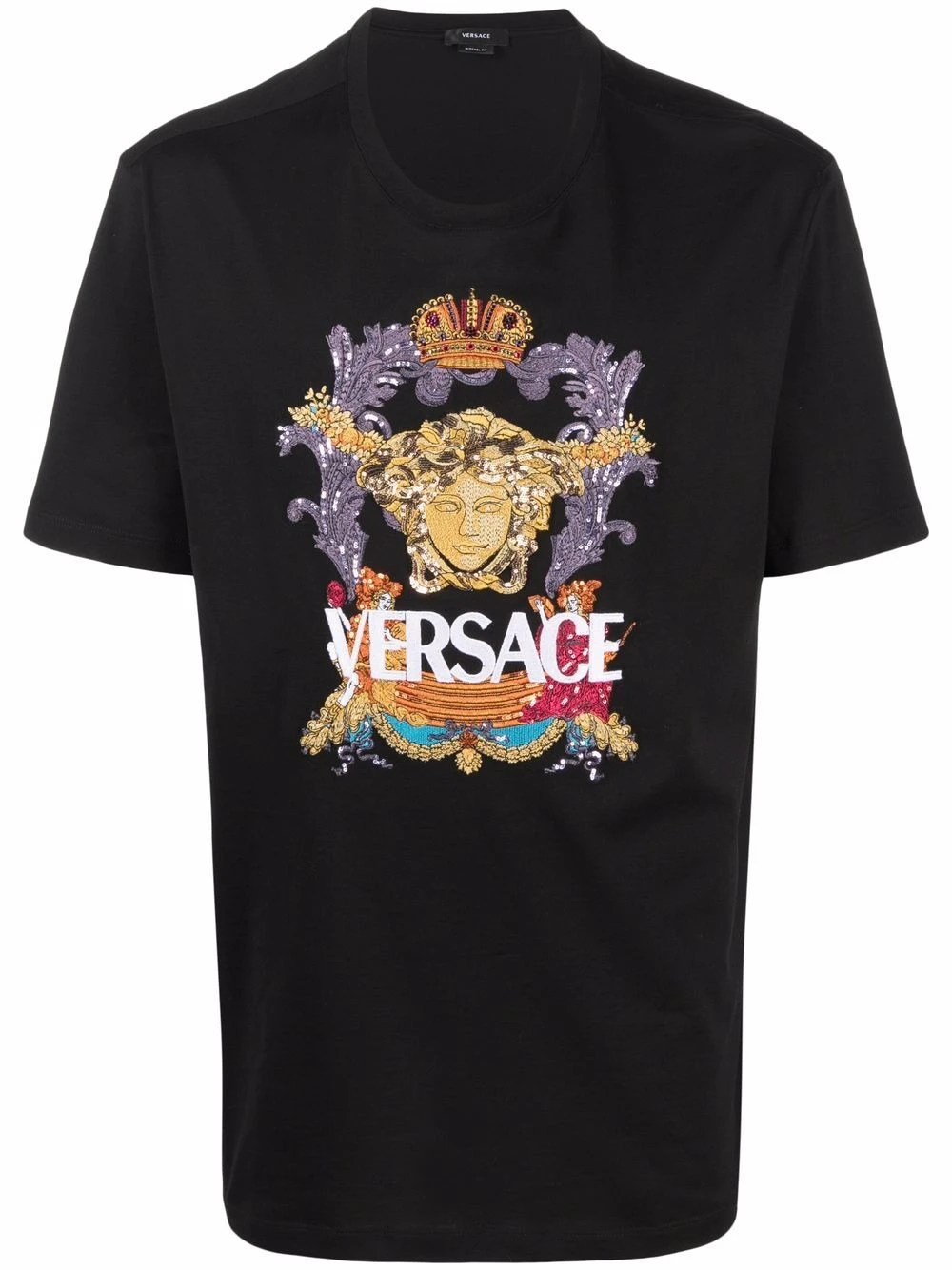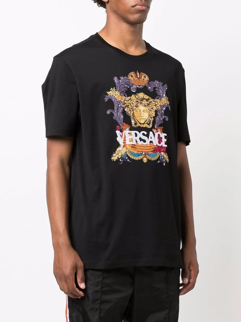 Motif Medusa, logo brodé sur le devant, encolure ras du cou, manches courtes, ourlet droit. Couleur : noir. Matière : coton.