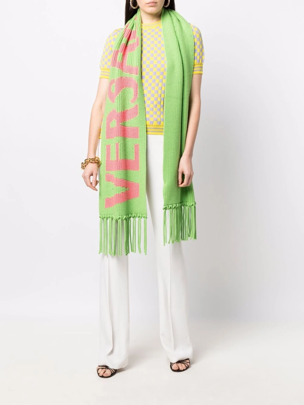 Versace écharpe en laine à logo intarsia