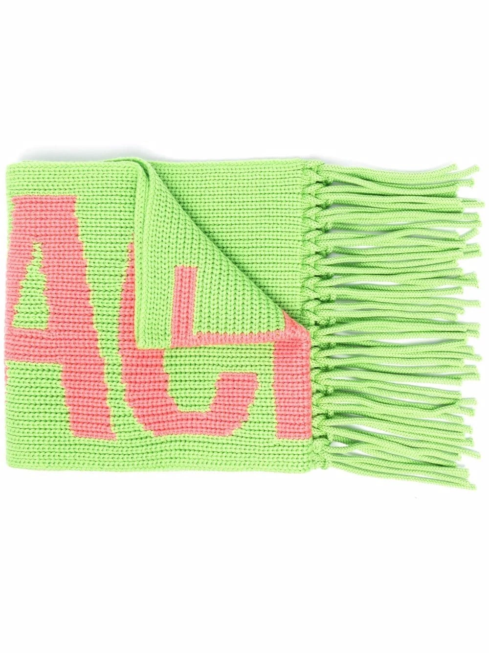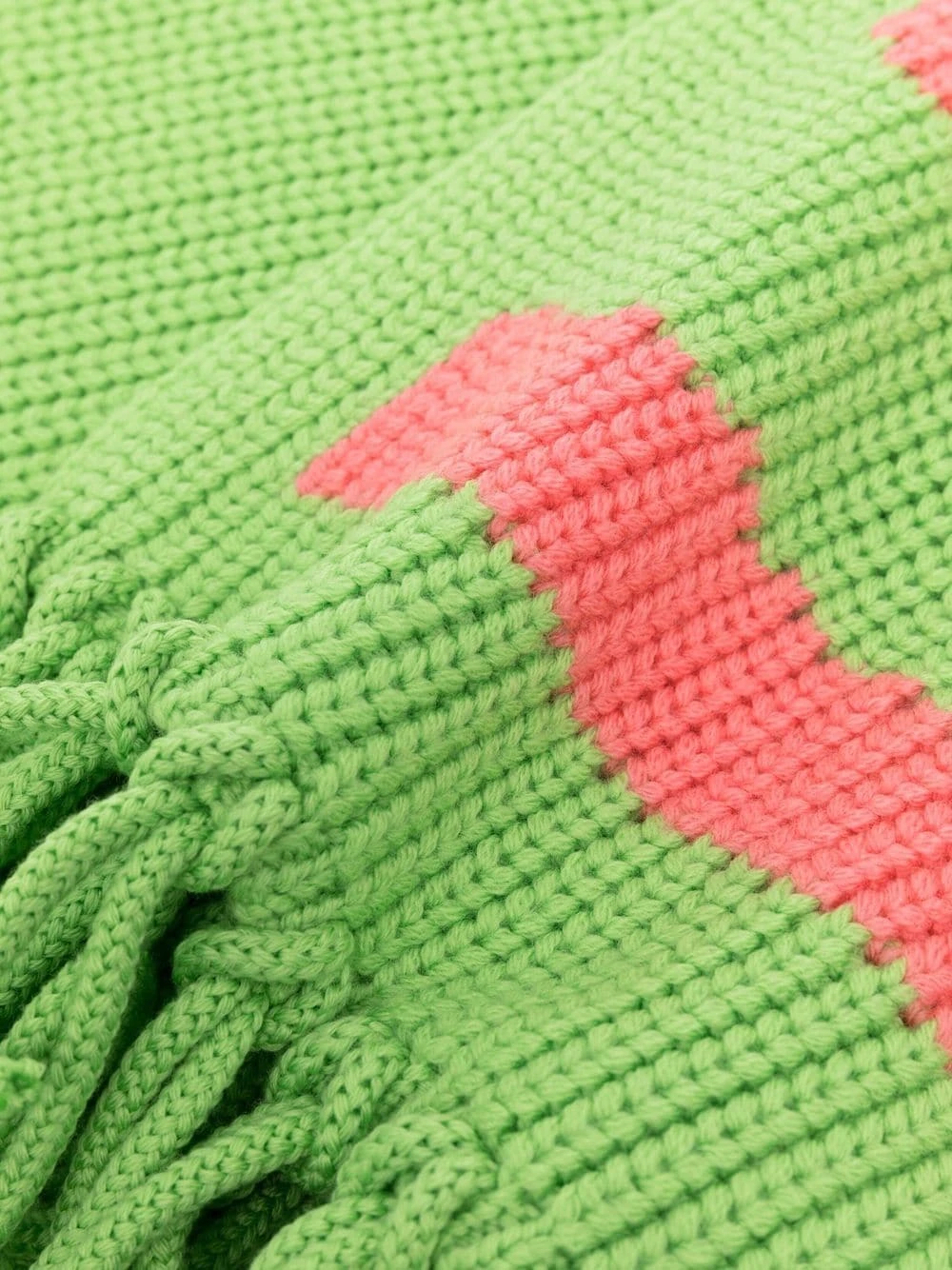 Logo intarsia, maille épaisse, bordures à pompons. Couleur : vert. Matière : laine.