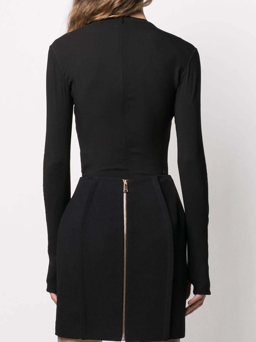 Encolure ronde, manches longues, fermeture zippée à l’arrière, fermeture à boutons pression. Couleur : noir. N’oubliez pas : cet article doit être essayé par-dessus vos propres vêtements.