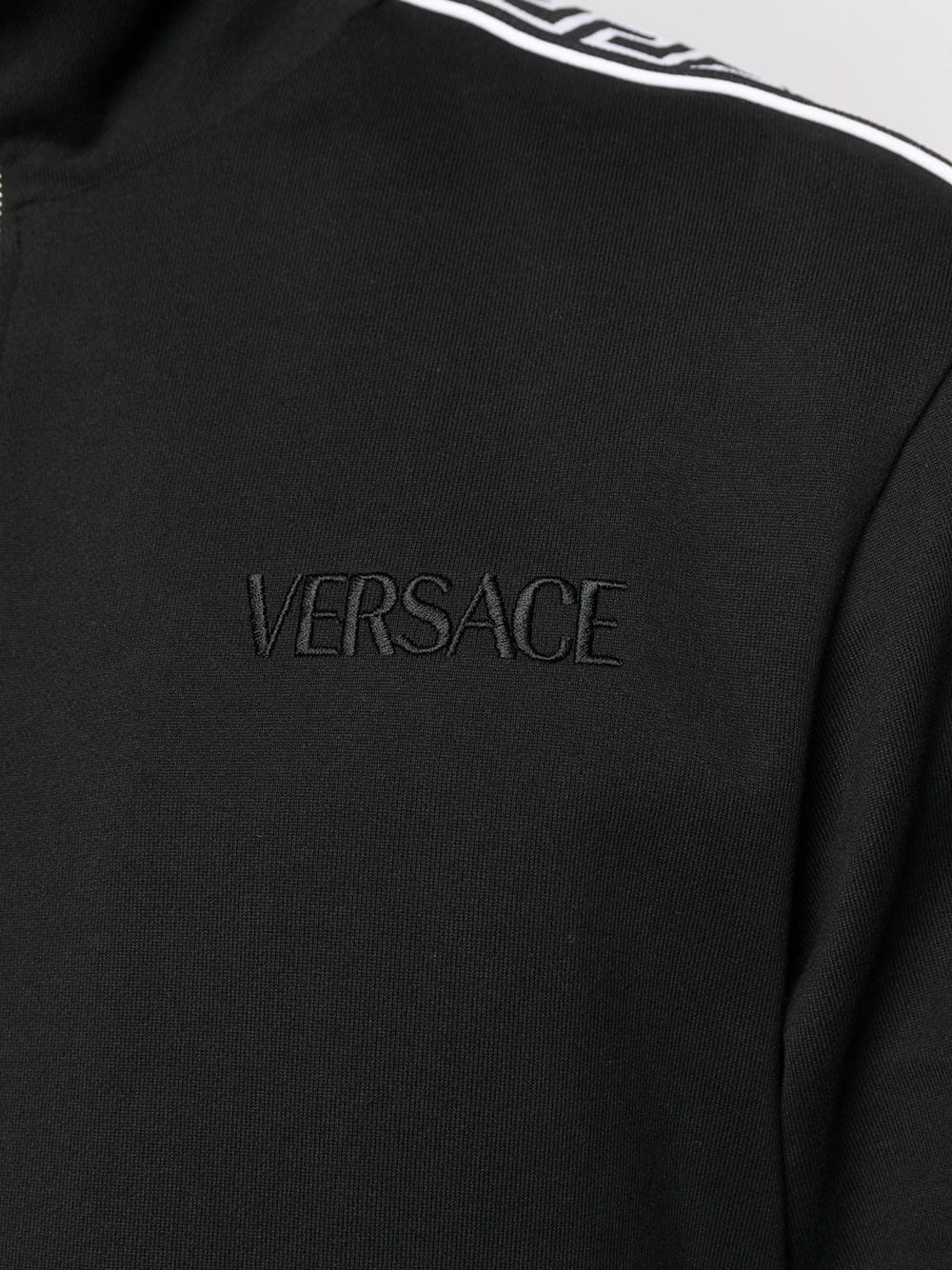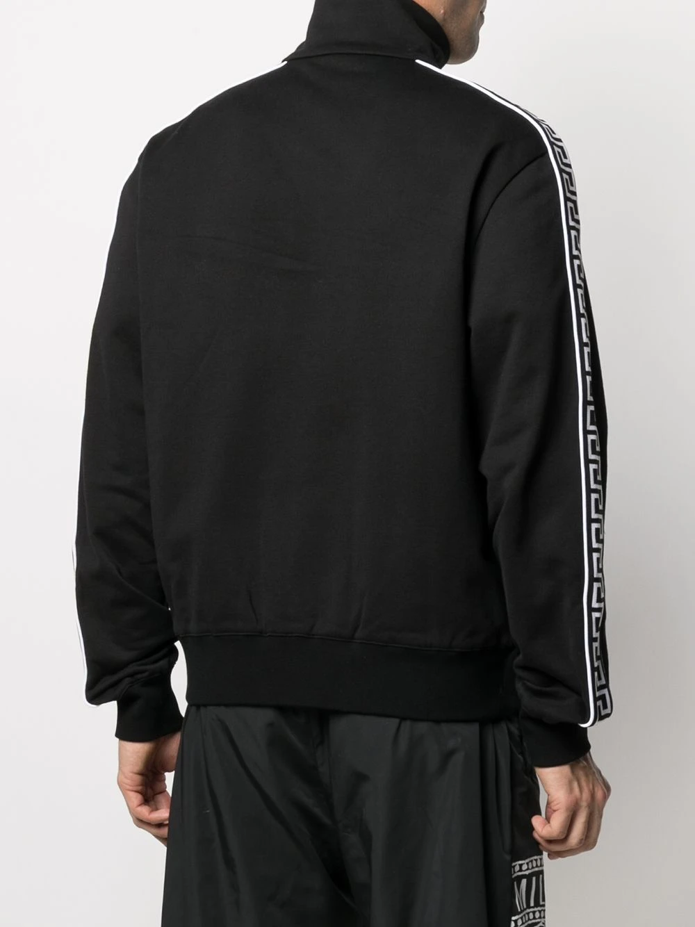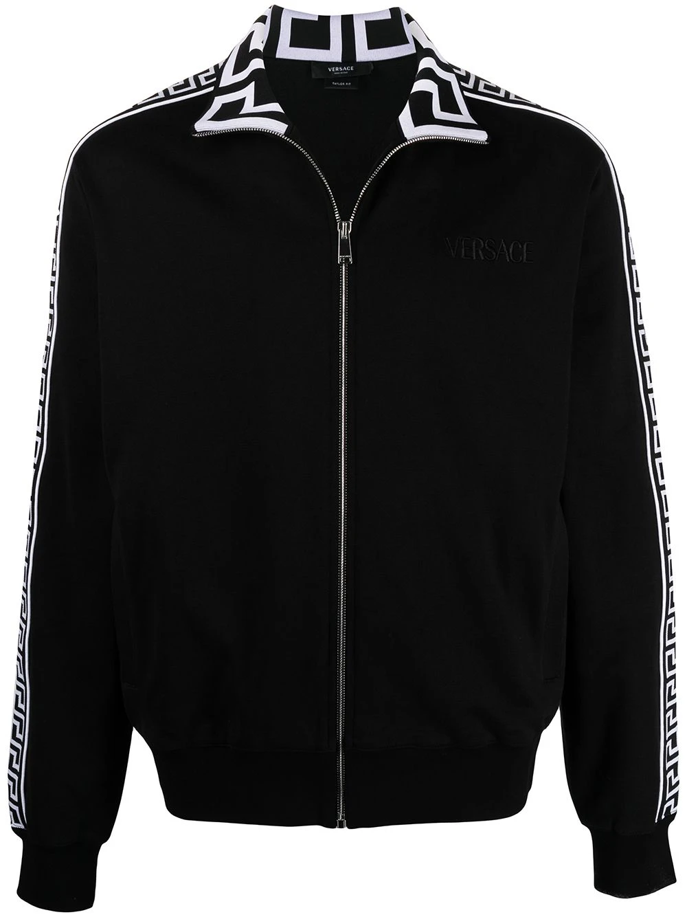 Motif imprimé, logo brodée sur la poitrine, col cheminée, fermeture zippée devant, manches longues, deux poches latérales passepoilées. Couleur : Noir. Matière : coton.