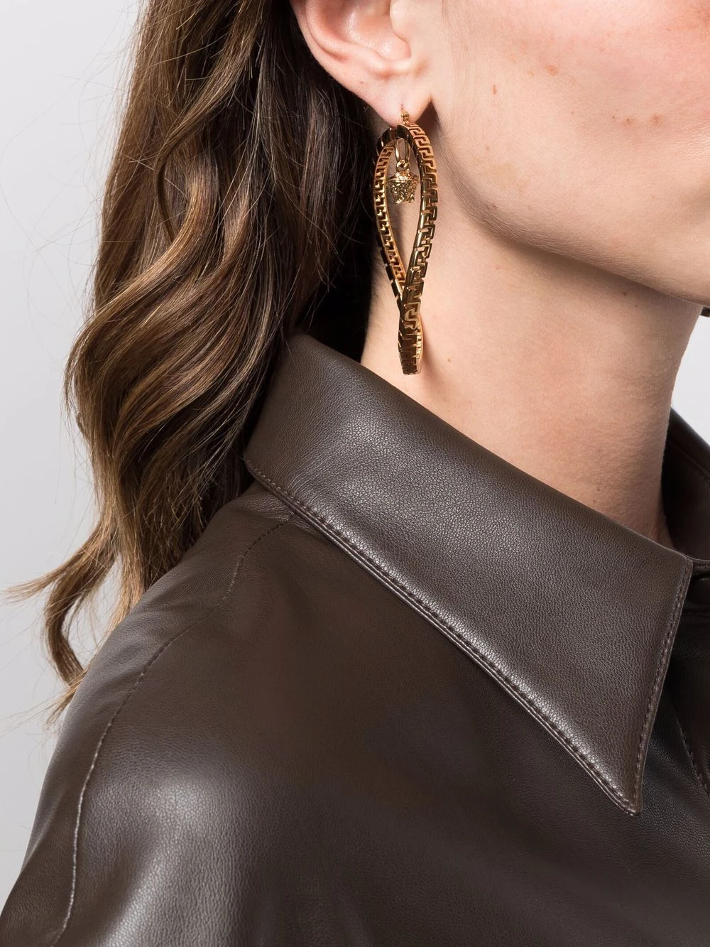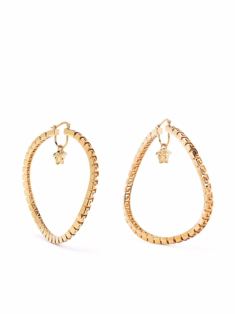 Motif Medusa, design de grande créole. Couleur : or. Matière : laiton. vendu par paire.