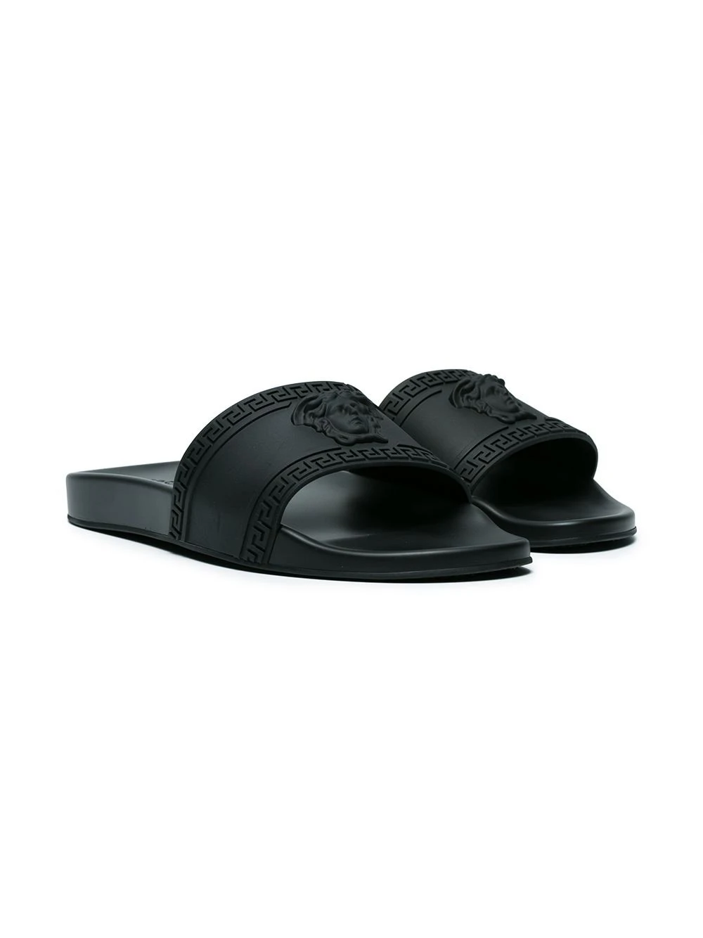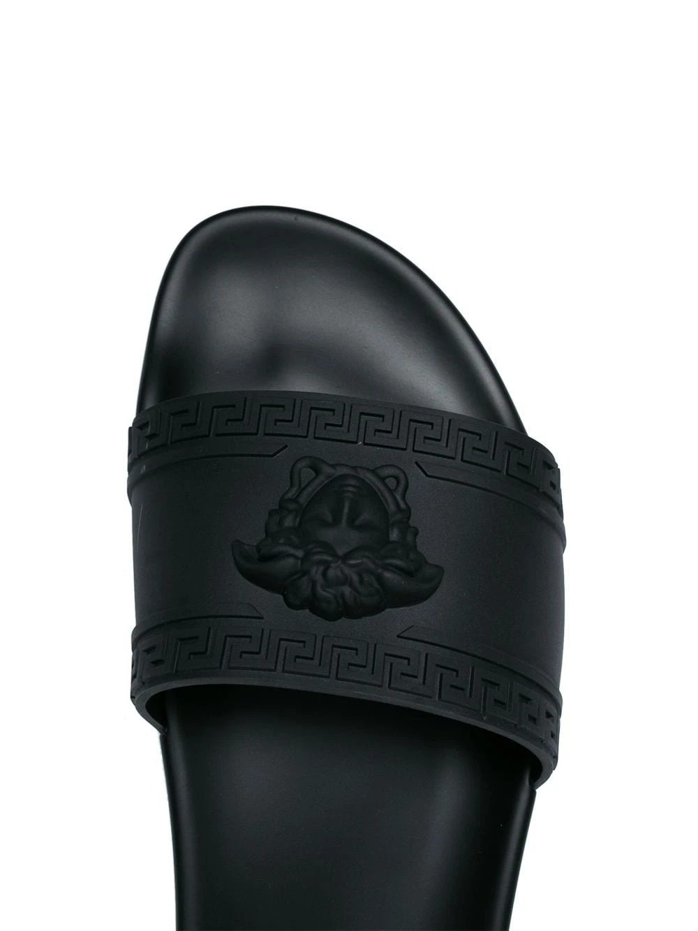 Claquettes Palazzo Medusa noires Versace avec dos-nu et bout ouvert.