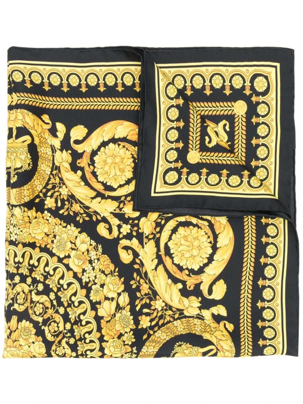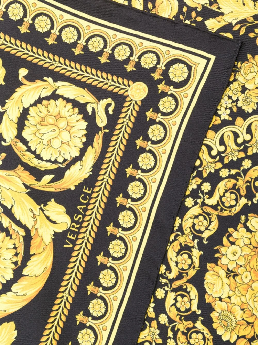 Foulard imprimé baroque en soie Versace avec finished edges.