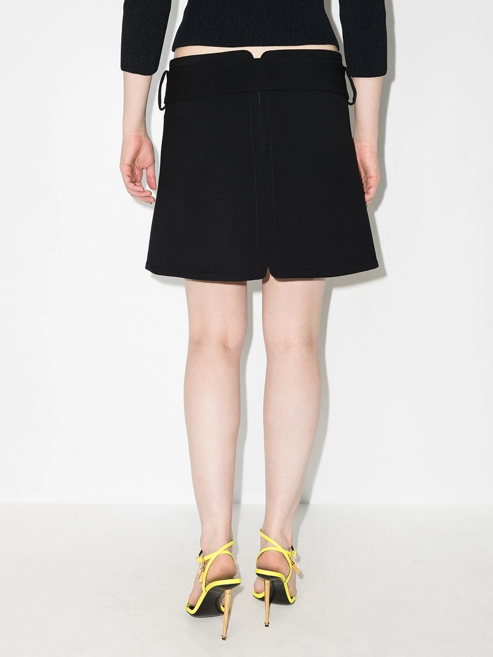 Taille ceinturée, coutures ton sur ton, taille haute. Couleur : noir.