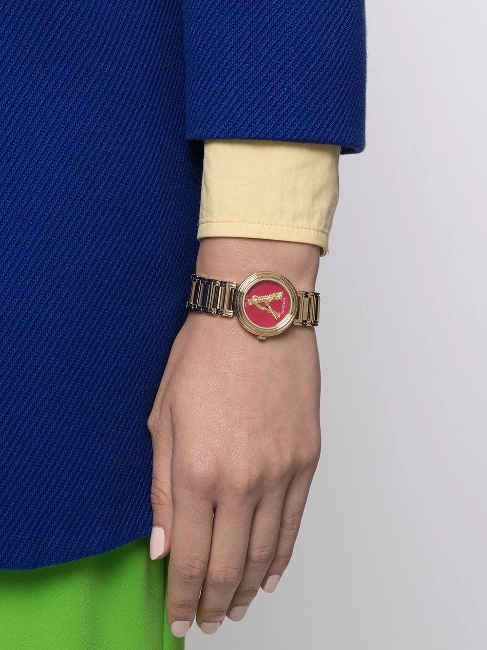 Boîtier rond, mouvement à quartz, bracelet à maillons ajustable, fermeture à loquet, aiguilles index, couronne vissée. Cet article bénéficie de deux ans de garantie standard proposés par la marque.