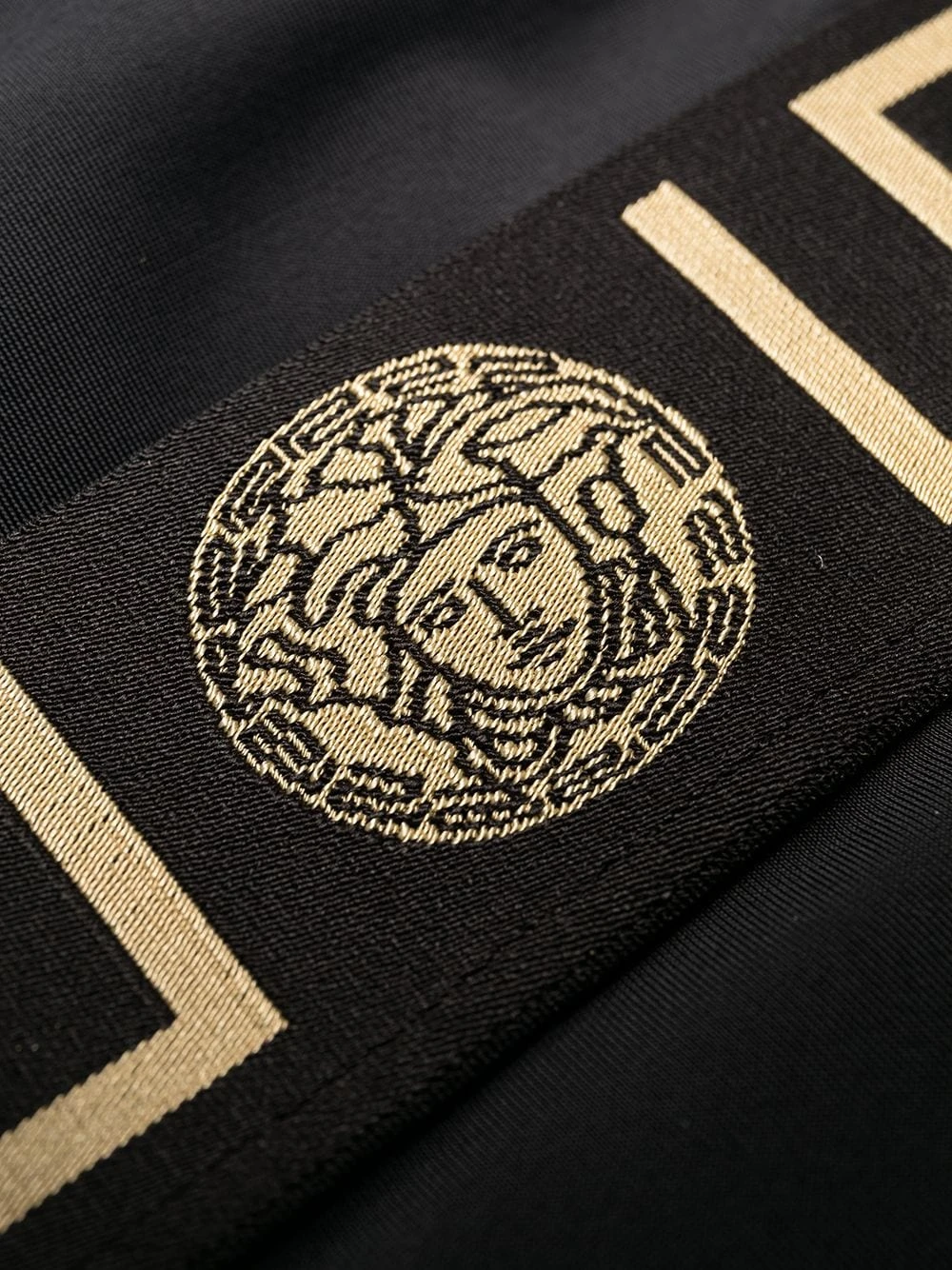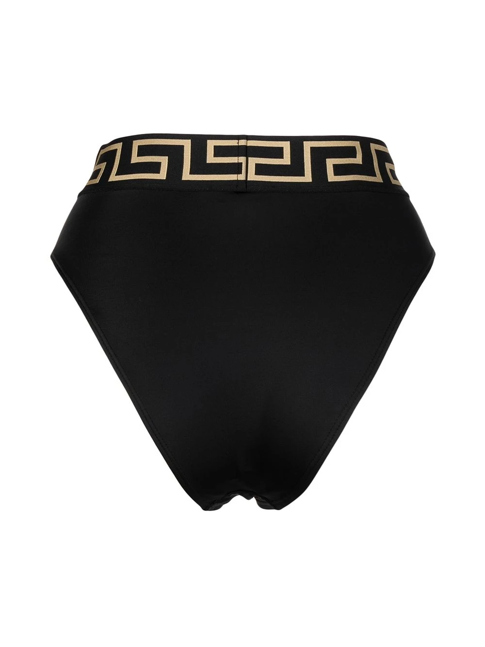 Détail Greca signature, coupe échancrée, coupe stretch. Couleur : noir. Veillez à essayer les maillots de bain par-dessus vos sous-vêtements.