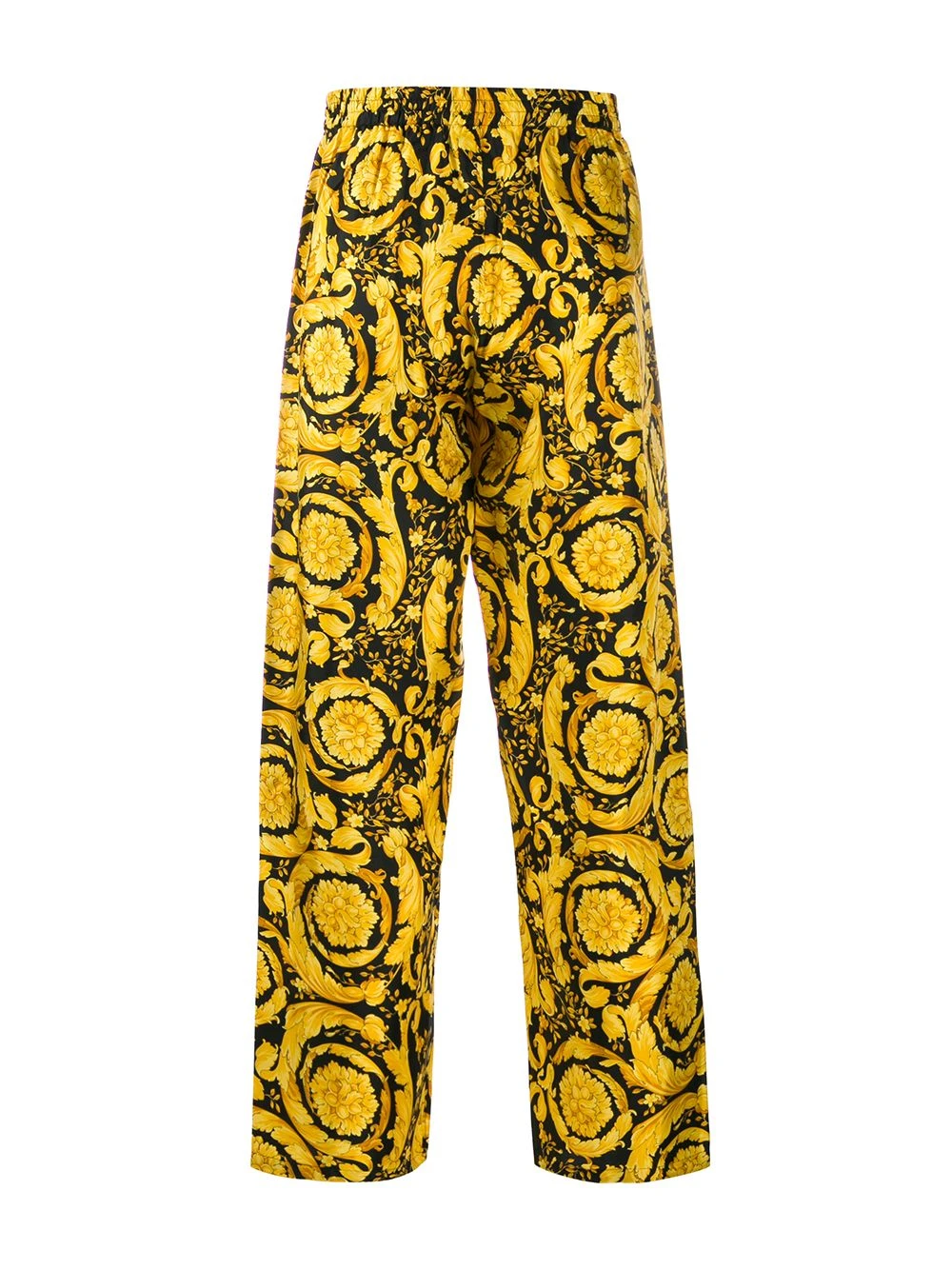 Bas de pyjama à imprimé baroque en soie Versace avec ceinture élastique, forme détendue et longueur classique.