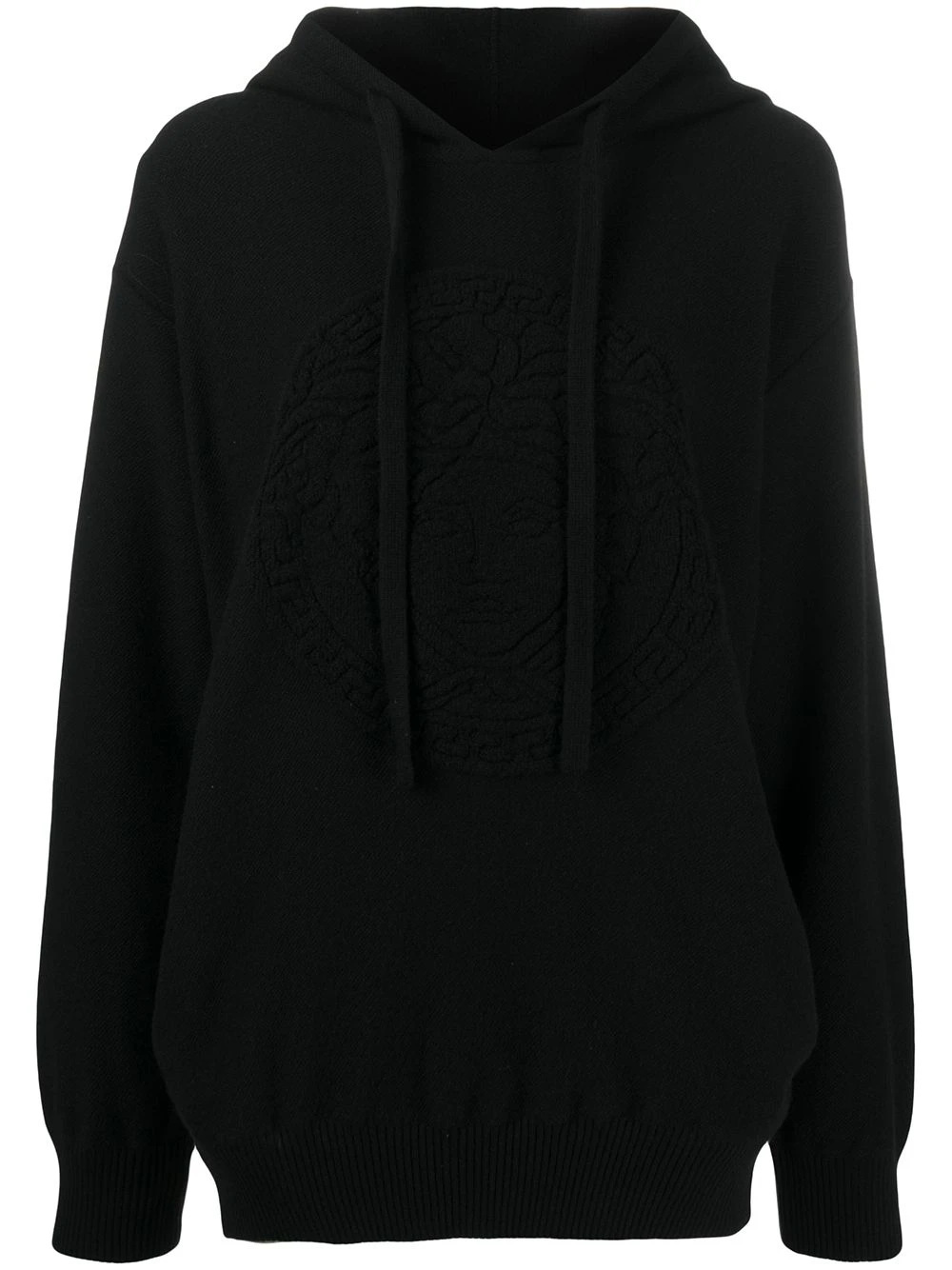 Motif Medusa, capuche à lien de resserrage, manches longues. Couleur : noir.