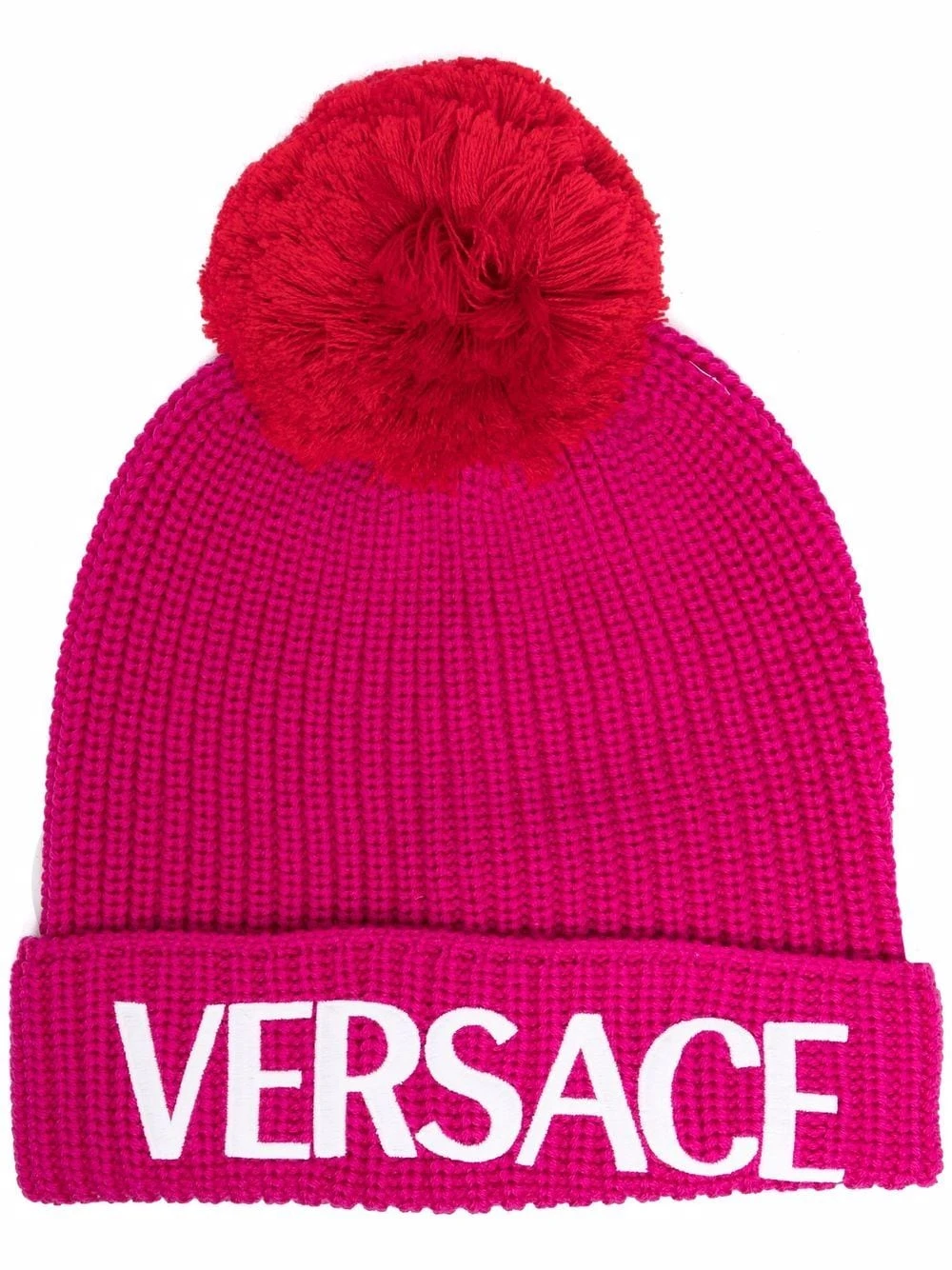 Design tricoté, bord retroussé, logo imprimé sur le devant, détail de pompon. Matière : laine.