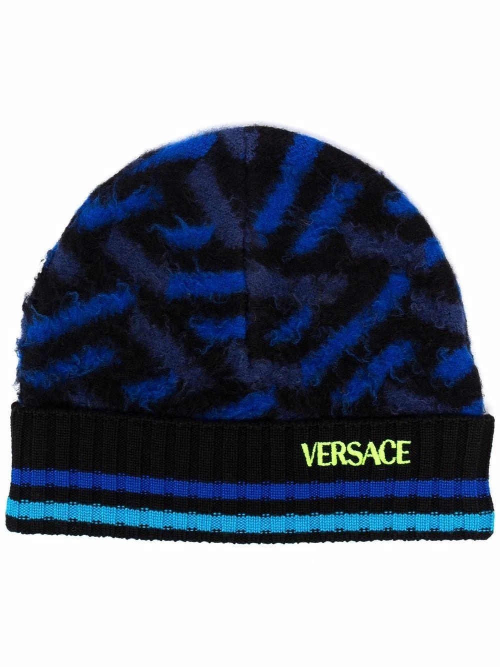 Design colour block, logo brodé sur le devant, bordure rayée, design tricoté, bord en maille côtelée, bord retroussé.